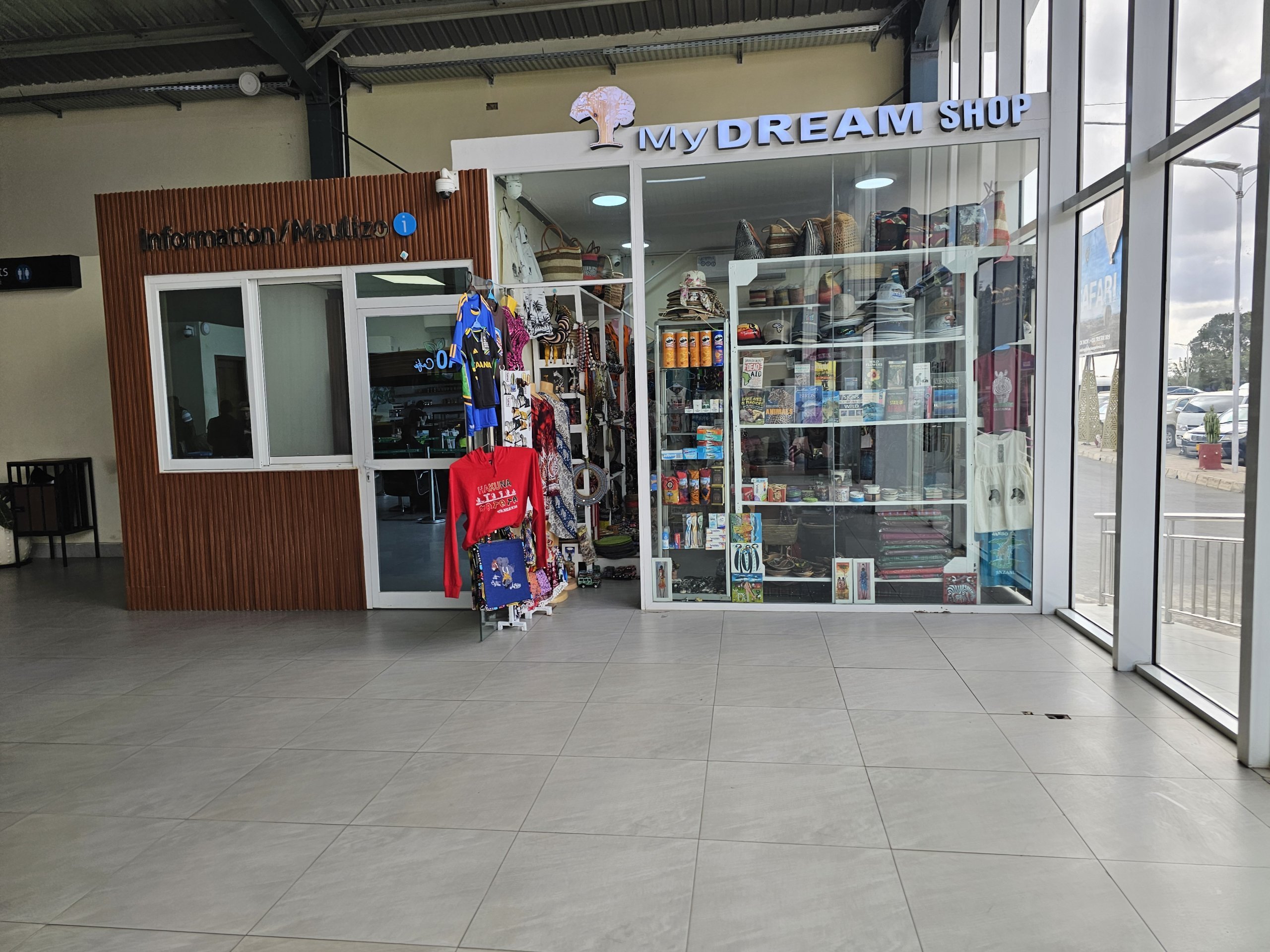 A área pública do terminal está equipada com uma pequena loja que vende lembranças, bebidas e pequenos produtos alimentares. Existe outra pequena loja de recordações depois do posto de controlo de segurança.