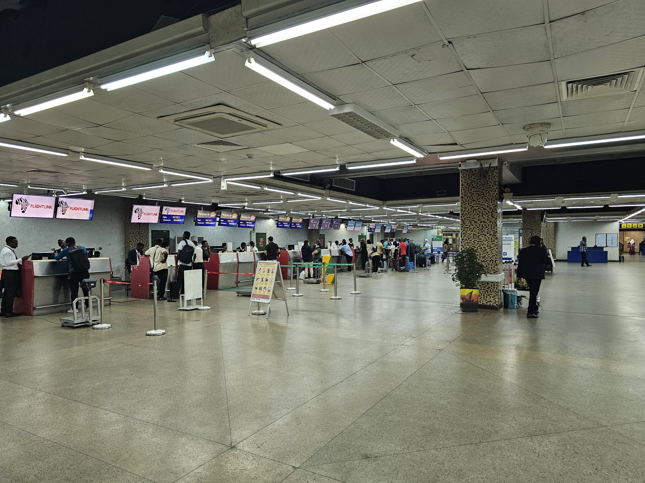Com exceção dos voos da Precision Air ou da Flightlink, que efectuam o check-in de voos domésticos e internacionais no Terminal 2, em todos os outros casos é necessário percorrer adicionalmente os 200 metros de comprimento do passadiço entre os Terminais 2 e 3.
