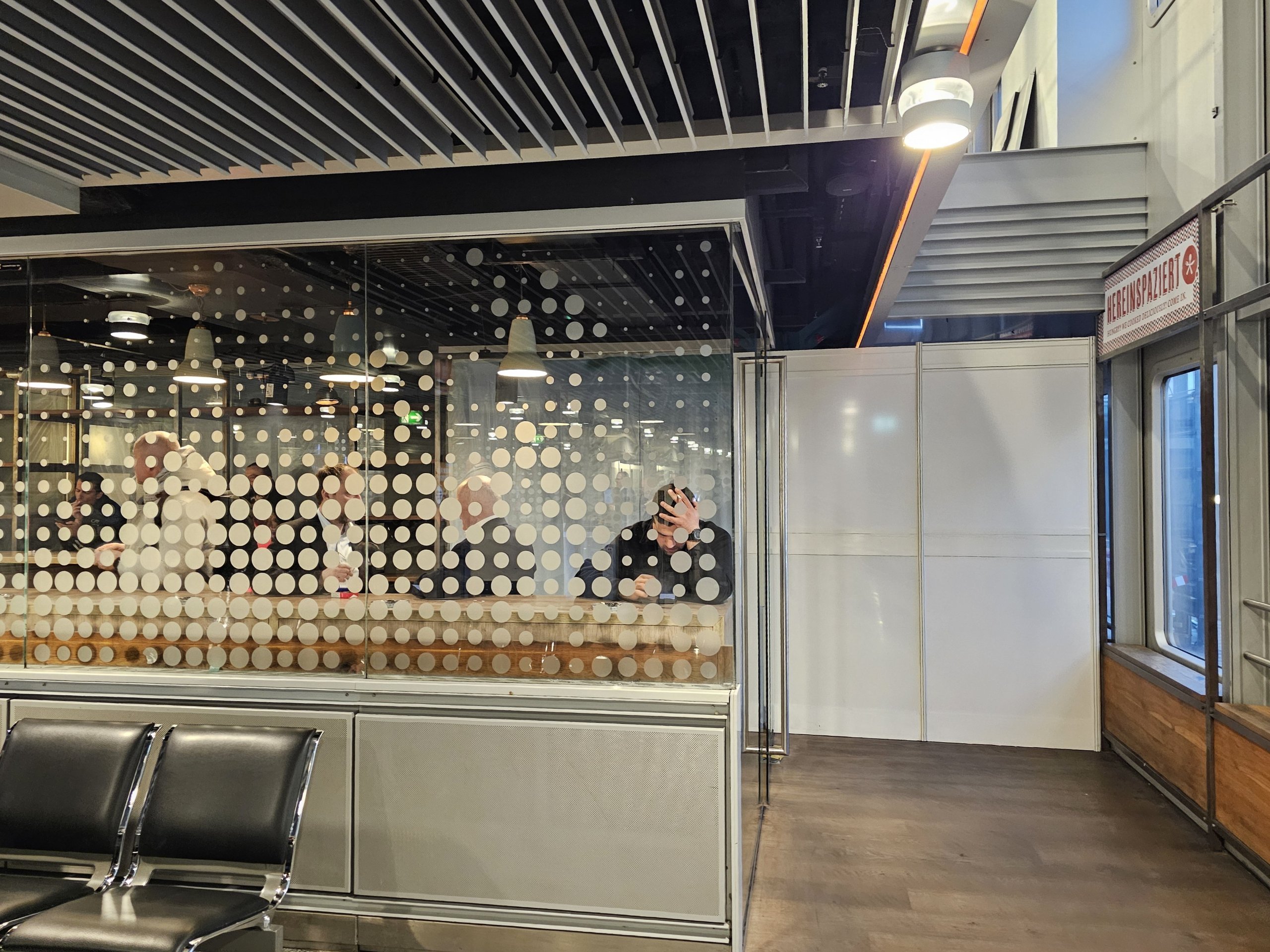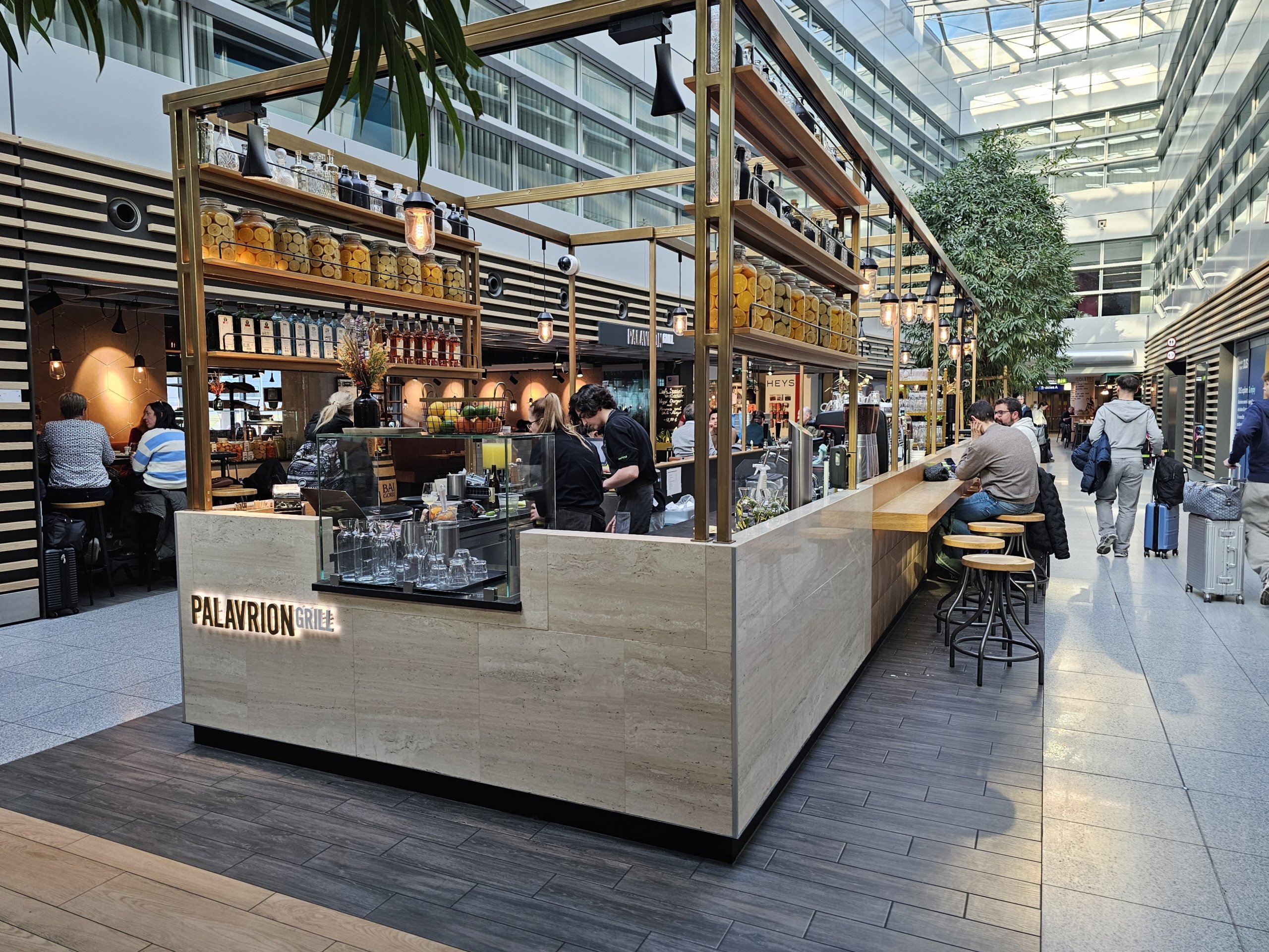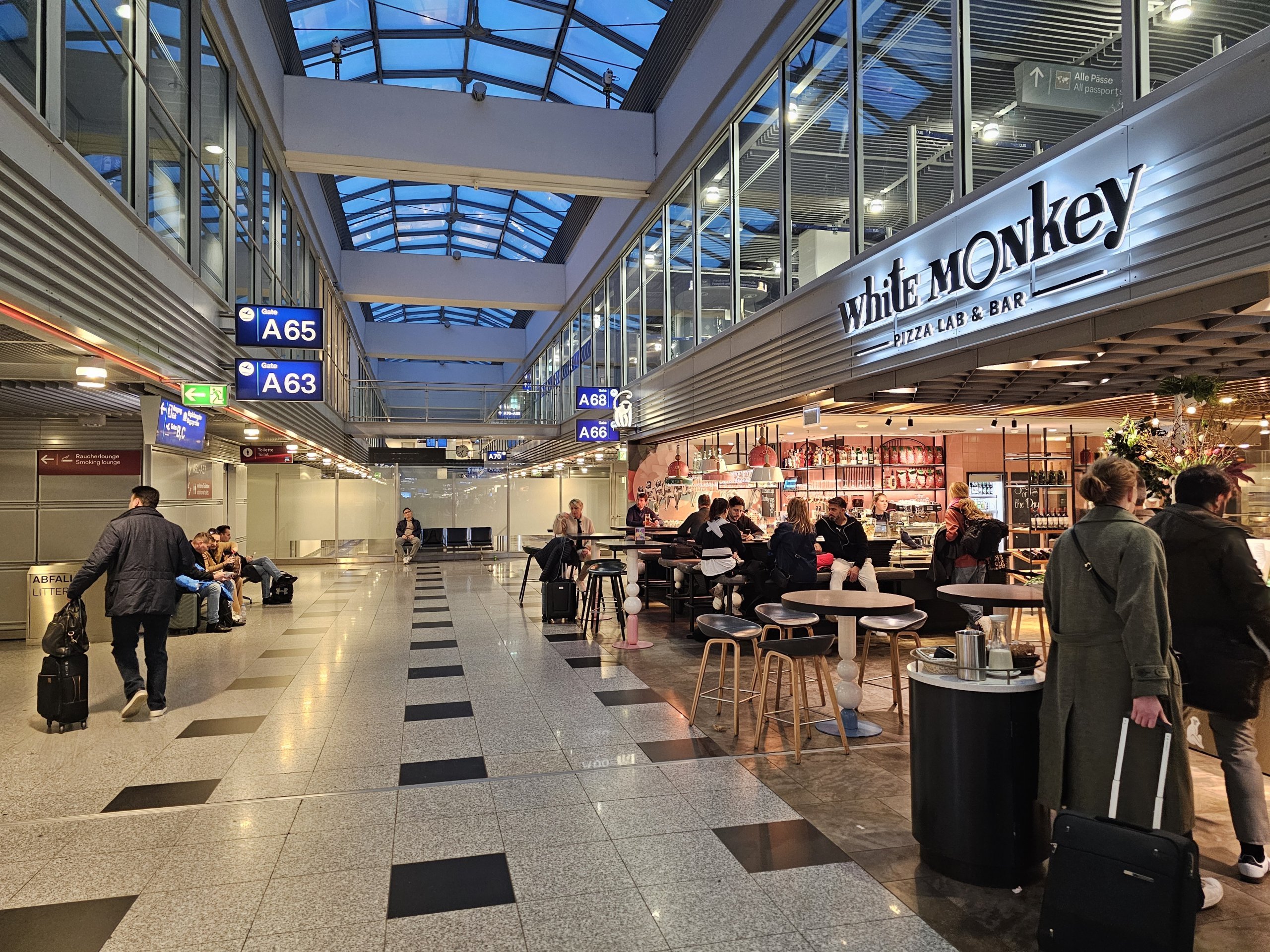 O aeroporto de Düsseldorf oferece muitas opções de refeições, tanto após a segurança como na área pública.
