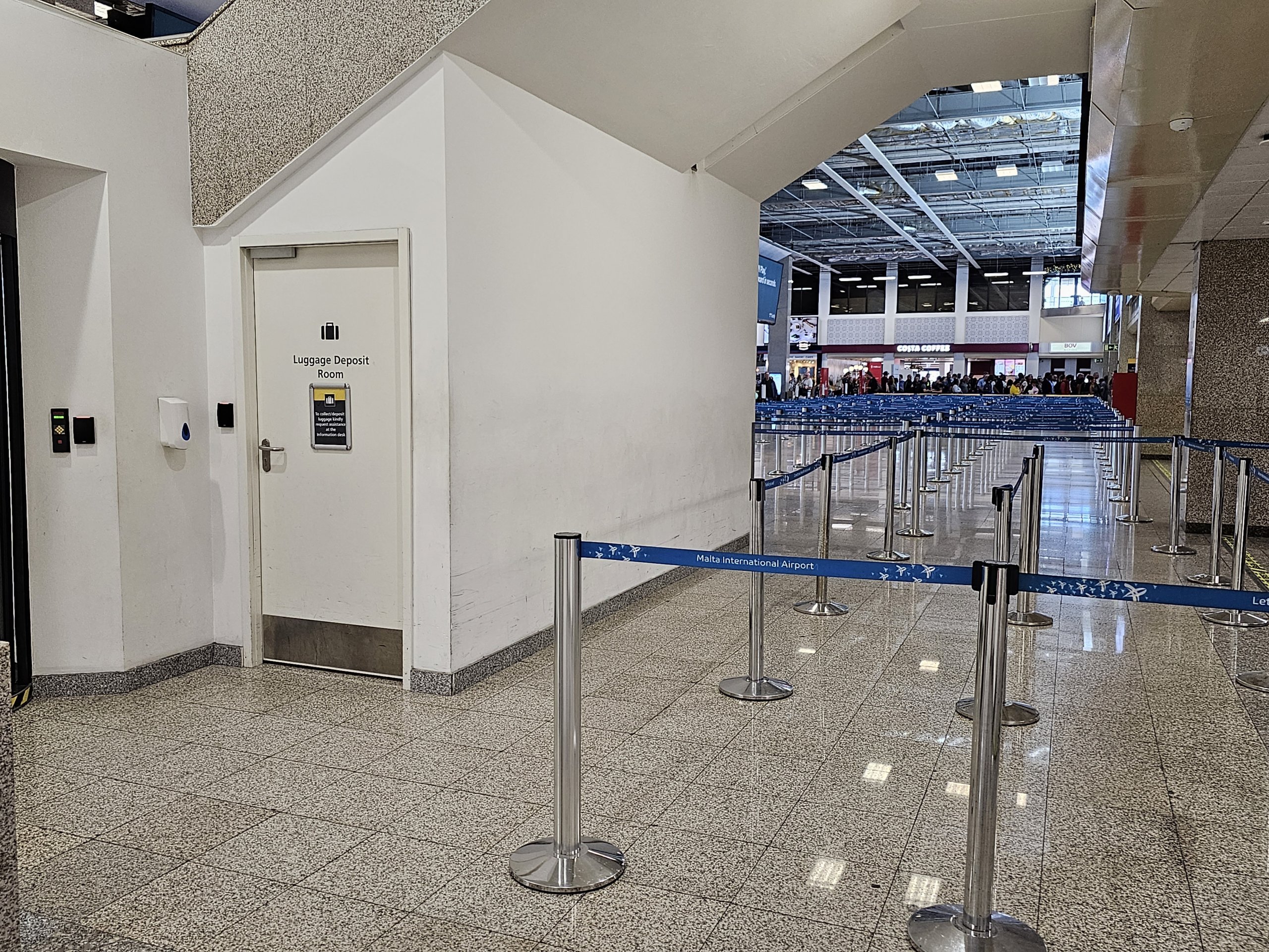 Mais uma vez, deve contactar primeiro o balcão de informações para recolher a sua bagagem. Está aberto 24 horas por dia, 7 dias por semana e a tarifa é 5 eur para um máximo de 12 horas ou 10 eur para 24 horas. Para obter os preços actuais, consulte o sítio Web do aeroporto: maltairport.com/luggage-deposit.