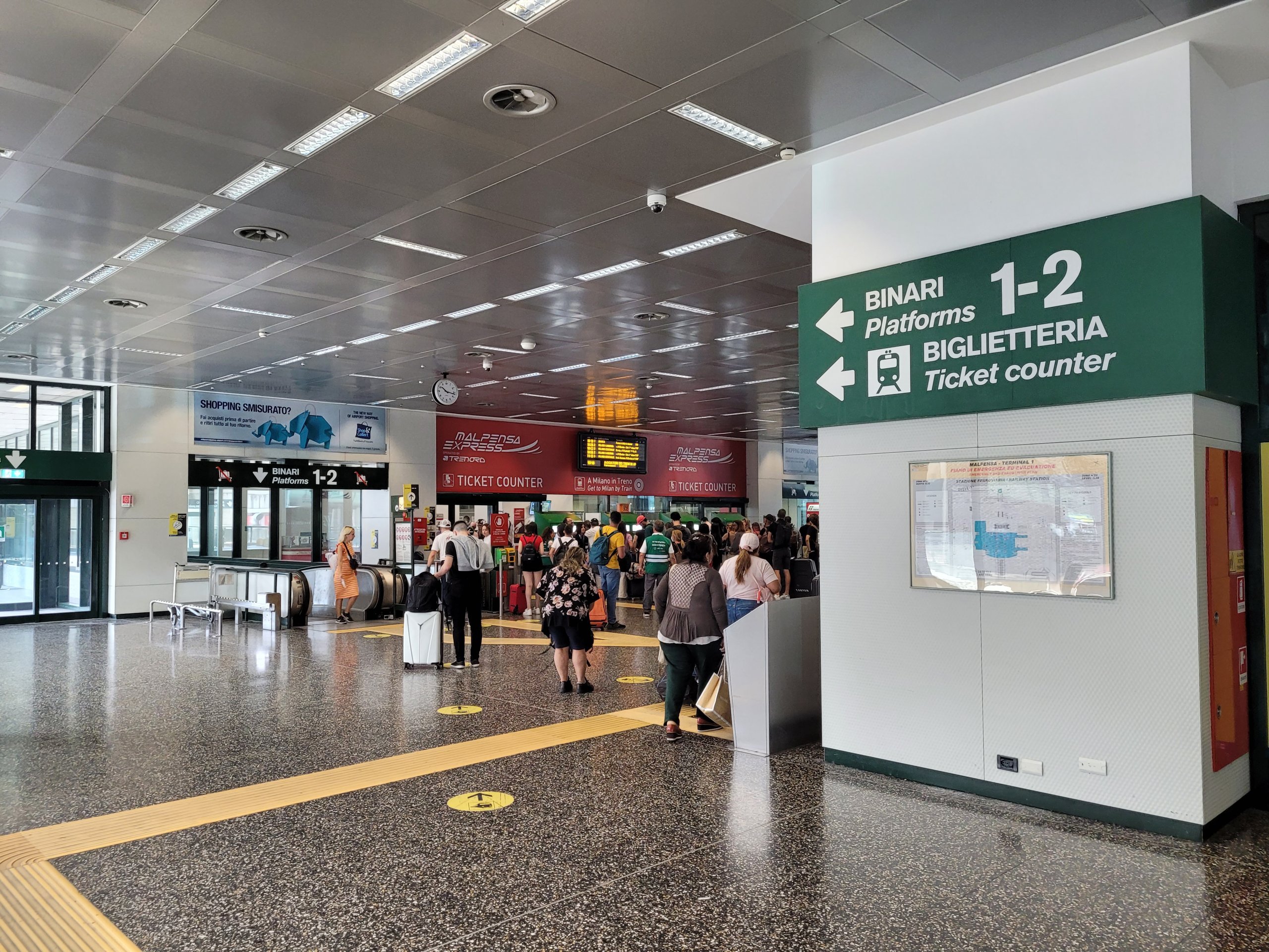 Horários e reserva de bilhetes em linha: malpensaexpress.it. Os bilhetes também podem ser comprados na máquina de venda automática da estação, onde se pode pagar com cartão e dinheiro.