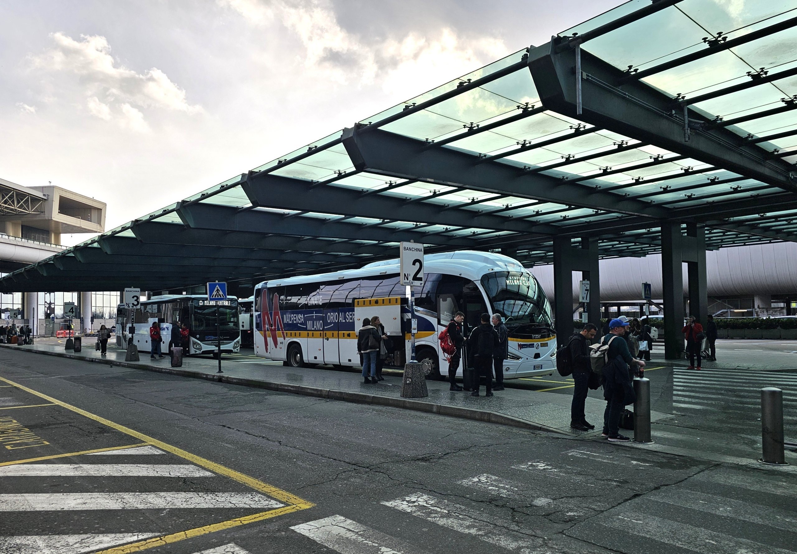 A formamais económica de chegar a Milão é de autocarro, que pára em ambos os terminais. Os autocarros demoram cerca de 60-75 minutos até ao centro da cidade e custam 10 euros, e 16 euros ida e volta em qualquer ligação.