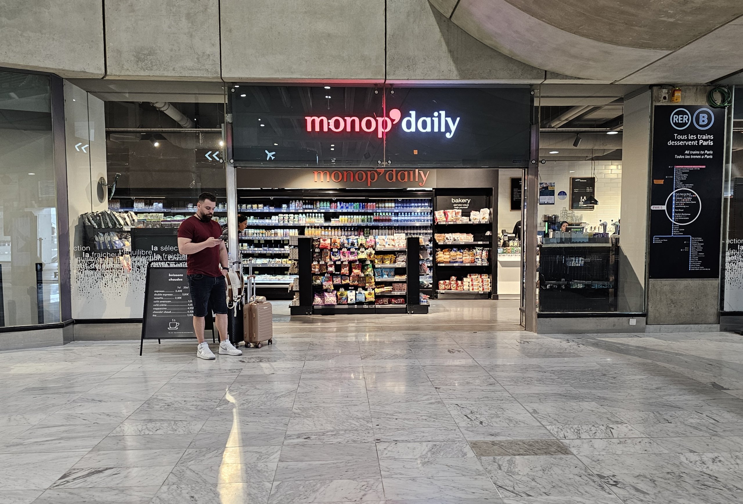 - Monop'daily - na plataforma de comboios em direção a Paris, terminais 2: das 6:00 às 22:00