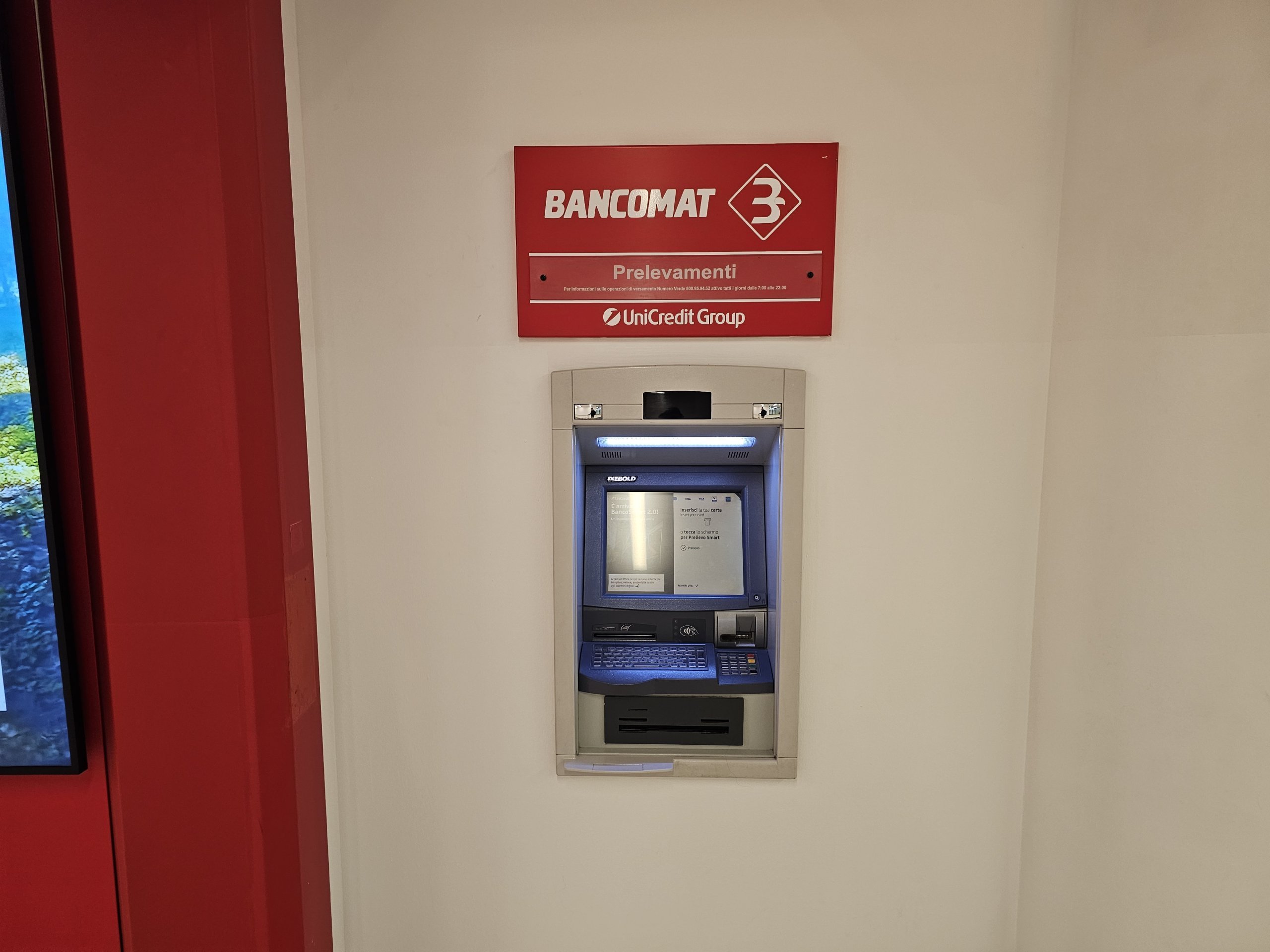 Existe uma caixa multibanco UniCredit na sala de embarque, entre os balcões de check-in e de segurança, perto do quiosque RELAY, que distribui dinheiro sem qualquer custo.