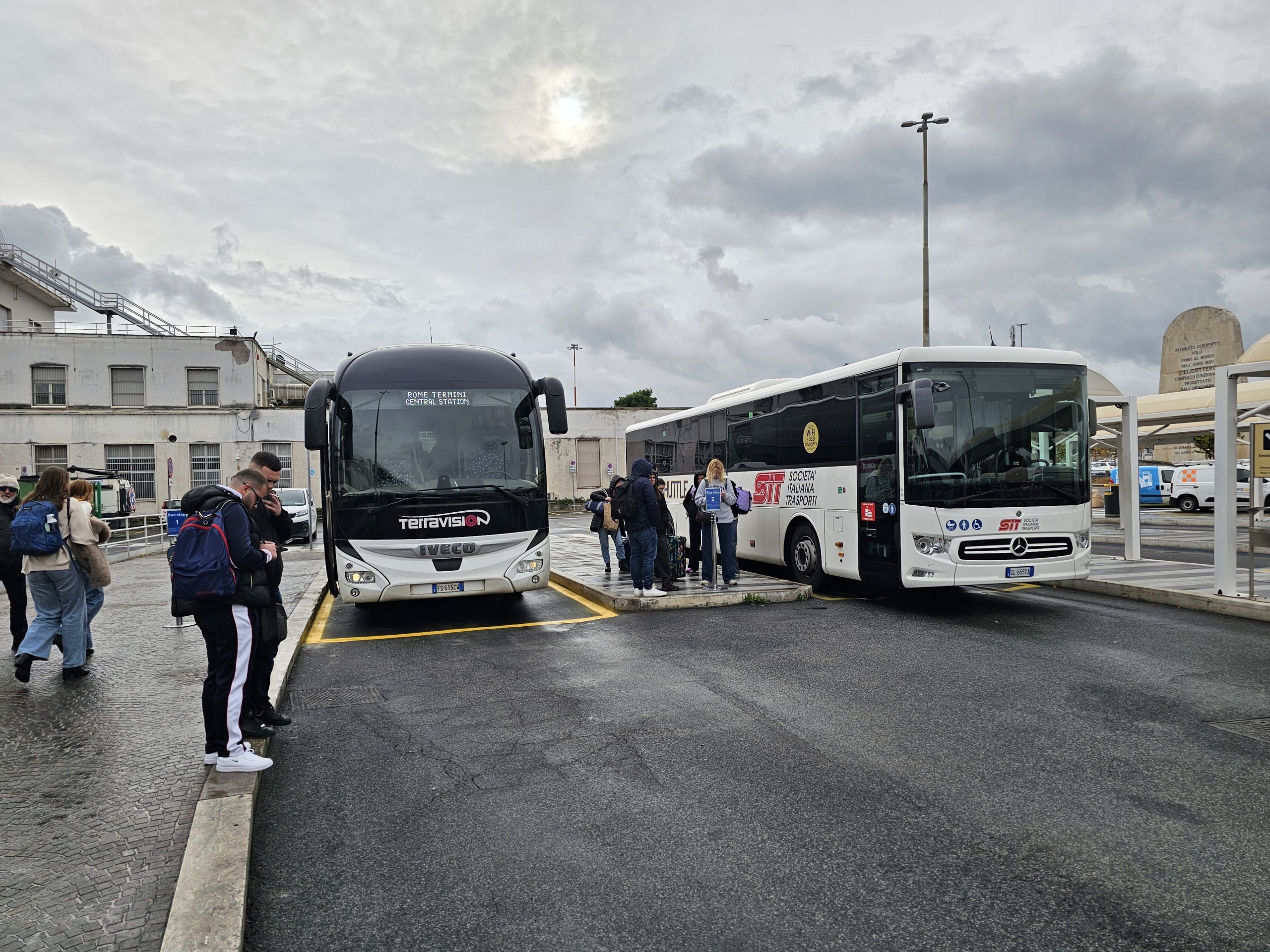 Na estação Termini, todas as empresas param na Via Giovanni Giolitti (as mesmas paragens que em direção ao aeroporto Fiumicino, por isso certifique-se de que apanha o autocarro certo).
