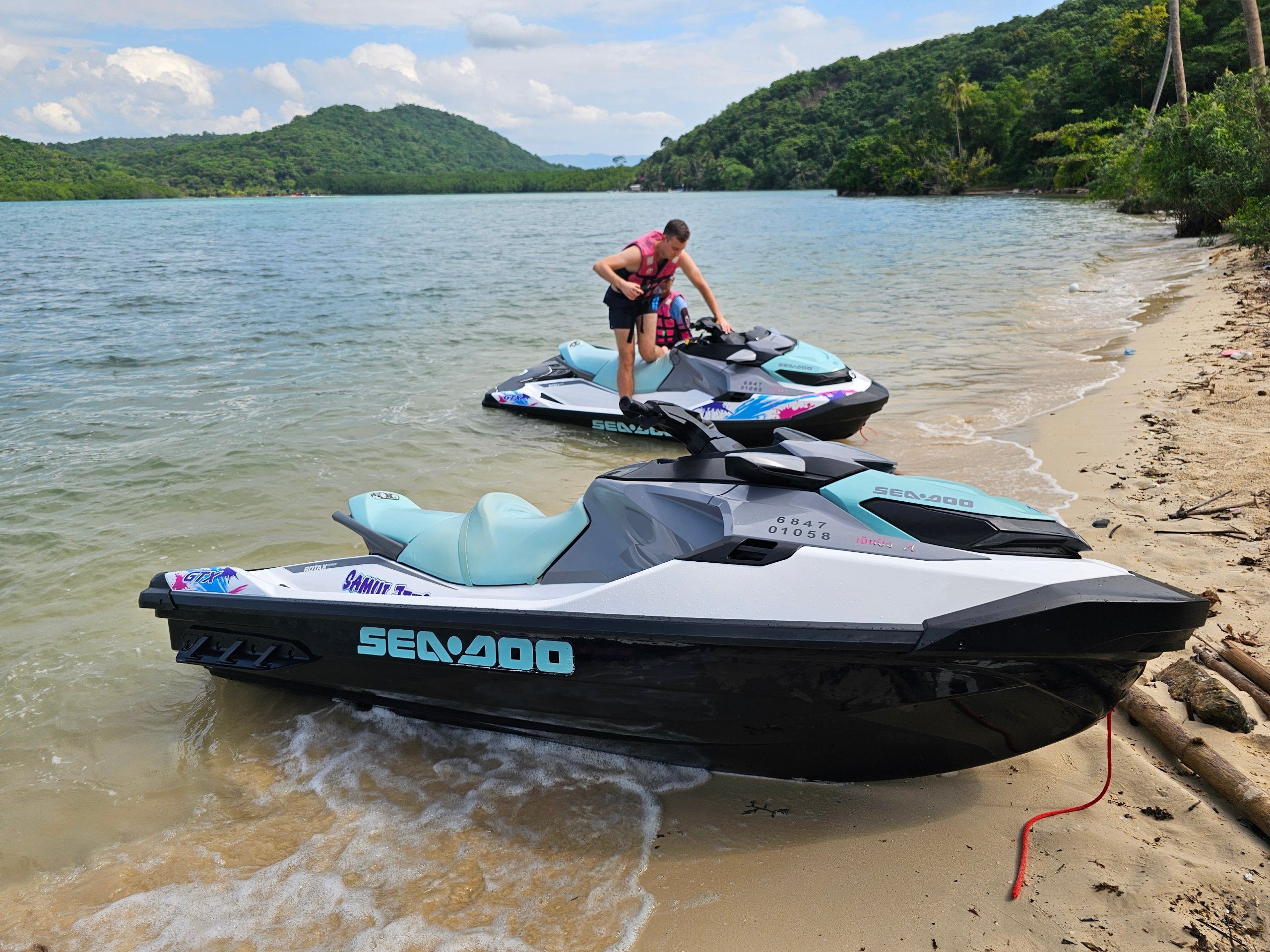Fomos dois num jet ski, no âmbito de uma viagem organizada. O transfer do hotel (ficámos no W Koh Samui) estava incluído e a organização era profissional. Mas o passeio em si? Foi consideravelmente mais selvagem do que esperávamos.