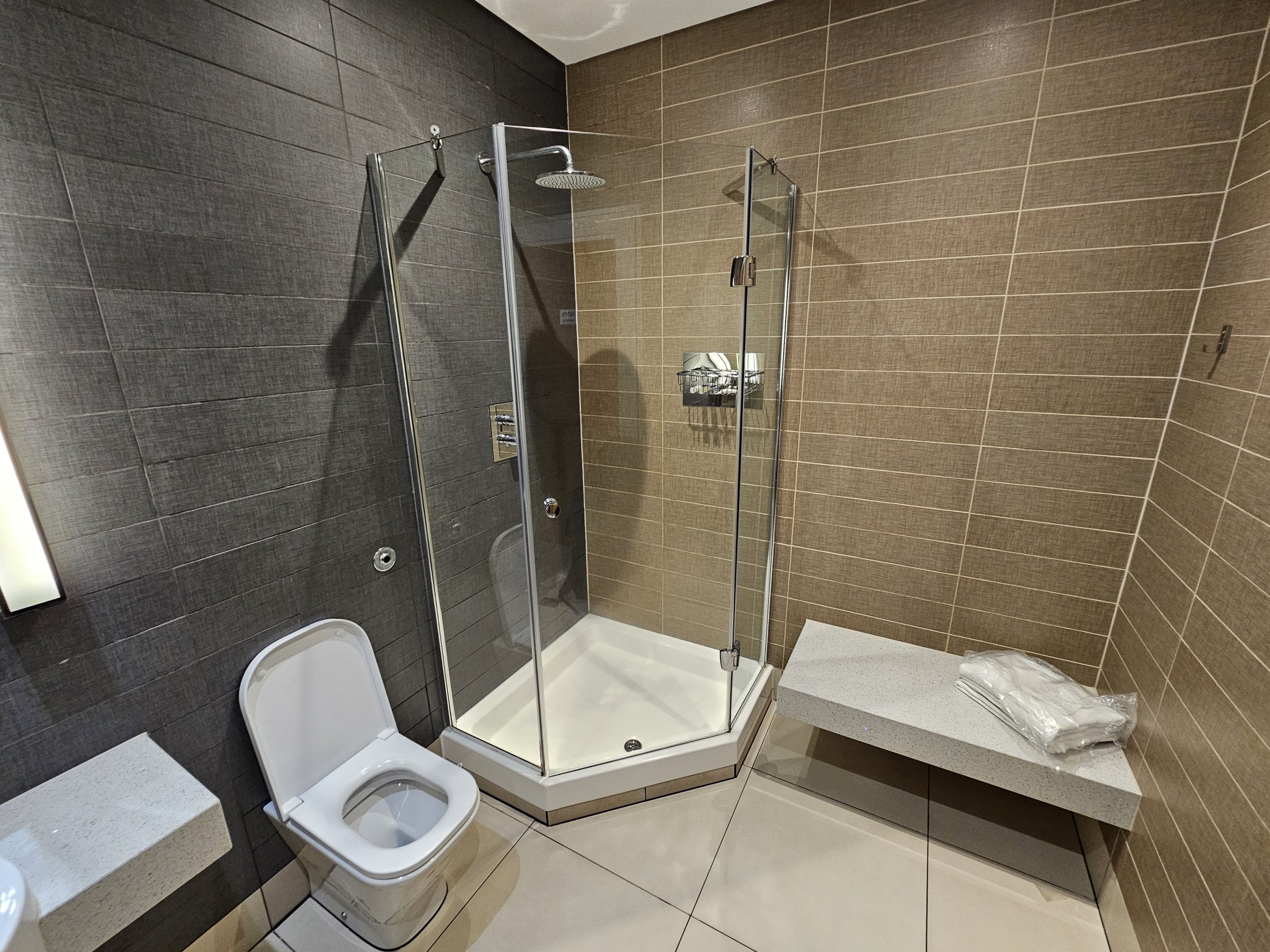 Os chuveiros encontram-se logo à entrada do lounge - são muito espaçosos e limpos, e recebe duas toalhas gratuitamente.