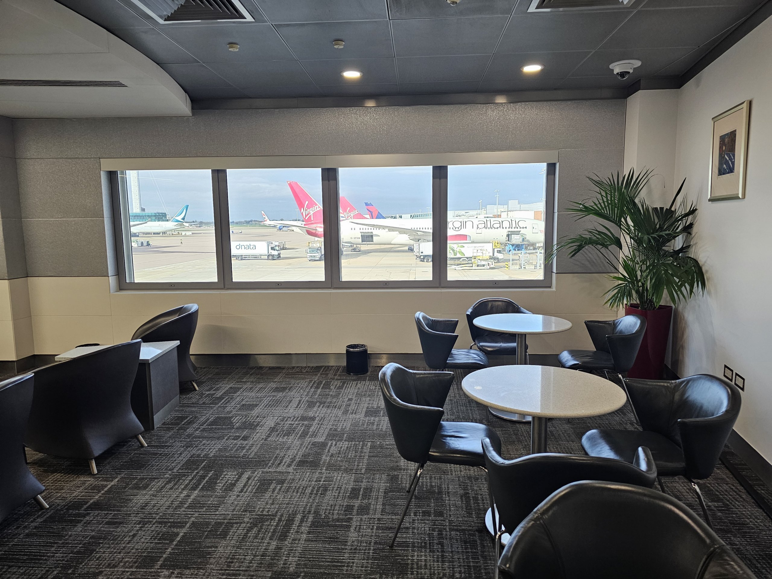 Uma grande vantagem é a excelente vista para o asfalto do aeroporto - há bancadas de grandes aviões de longo curso diretamente em frente ao lounge, e também pode ver a icónica torre do Aeroporto de Heahtrow a partir daqui.