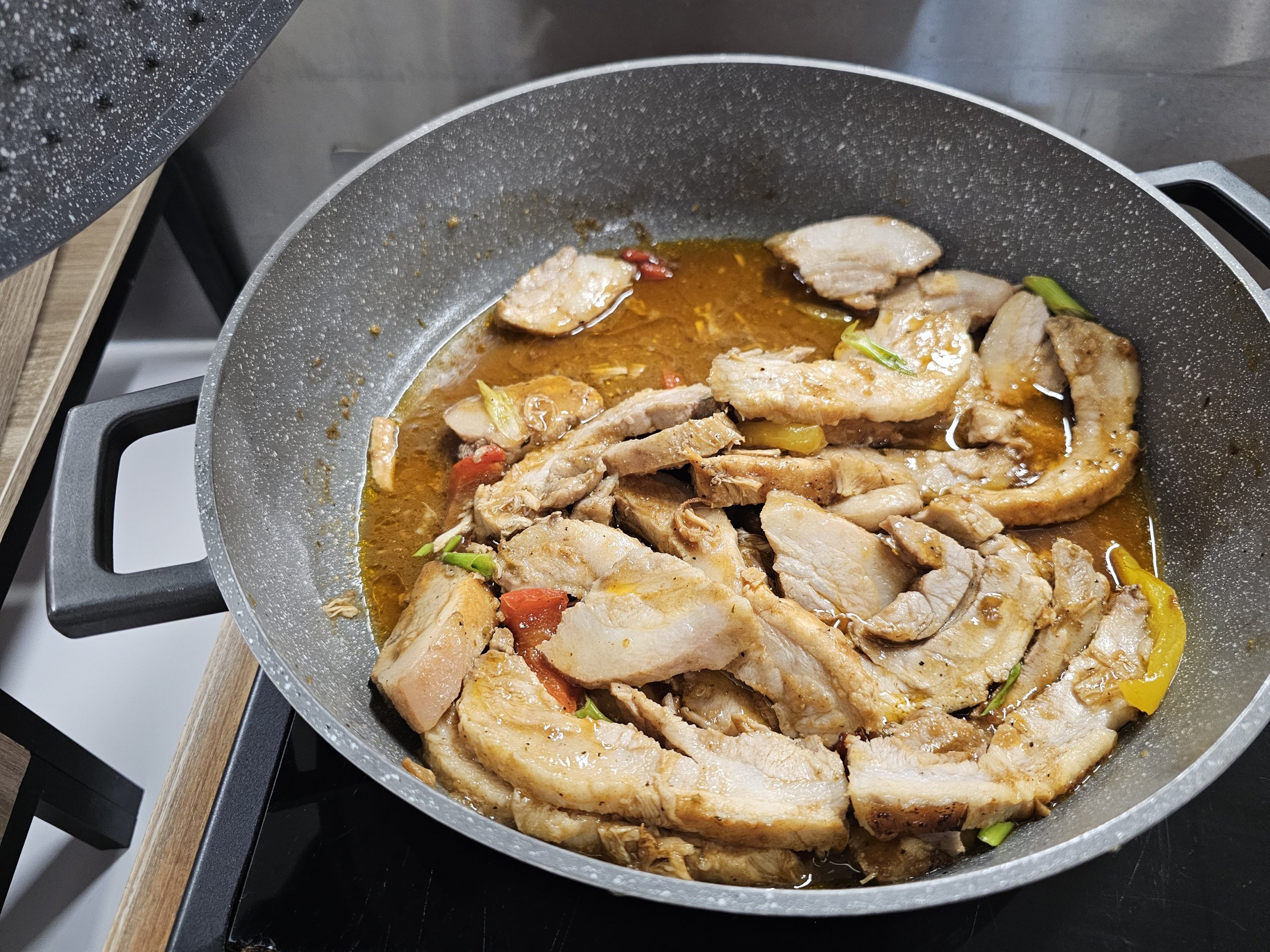 A ementa do almoço no dia da nossa visita incluía batatas cozidas, massa com cogumelos e carne de porco muito gorda.