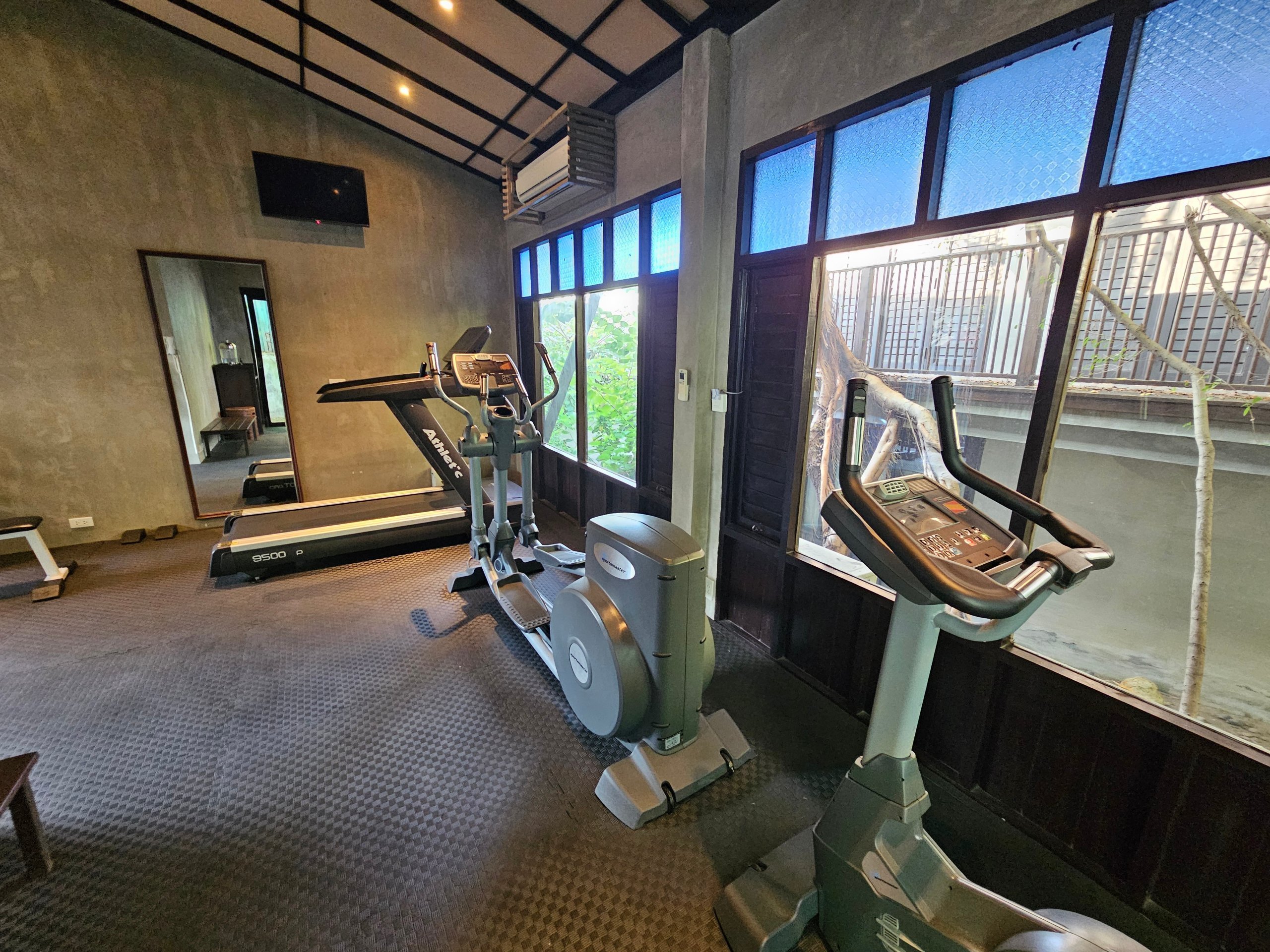 Também encontrará um ginásio muito pequeno com equipamento bastante antigo no topo, perto da receção. No entanto, como muitas vezes não se pode correr na praia devido à maré, o ginásio do hotel pode ser a única oportunidade para fazer exercício em algumas alturas do dia.
