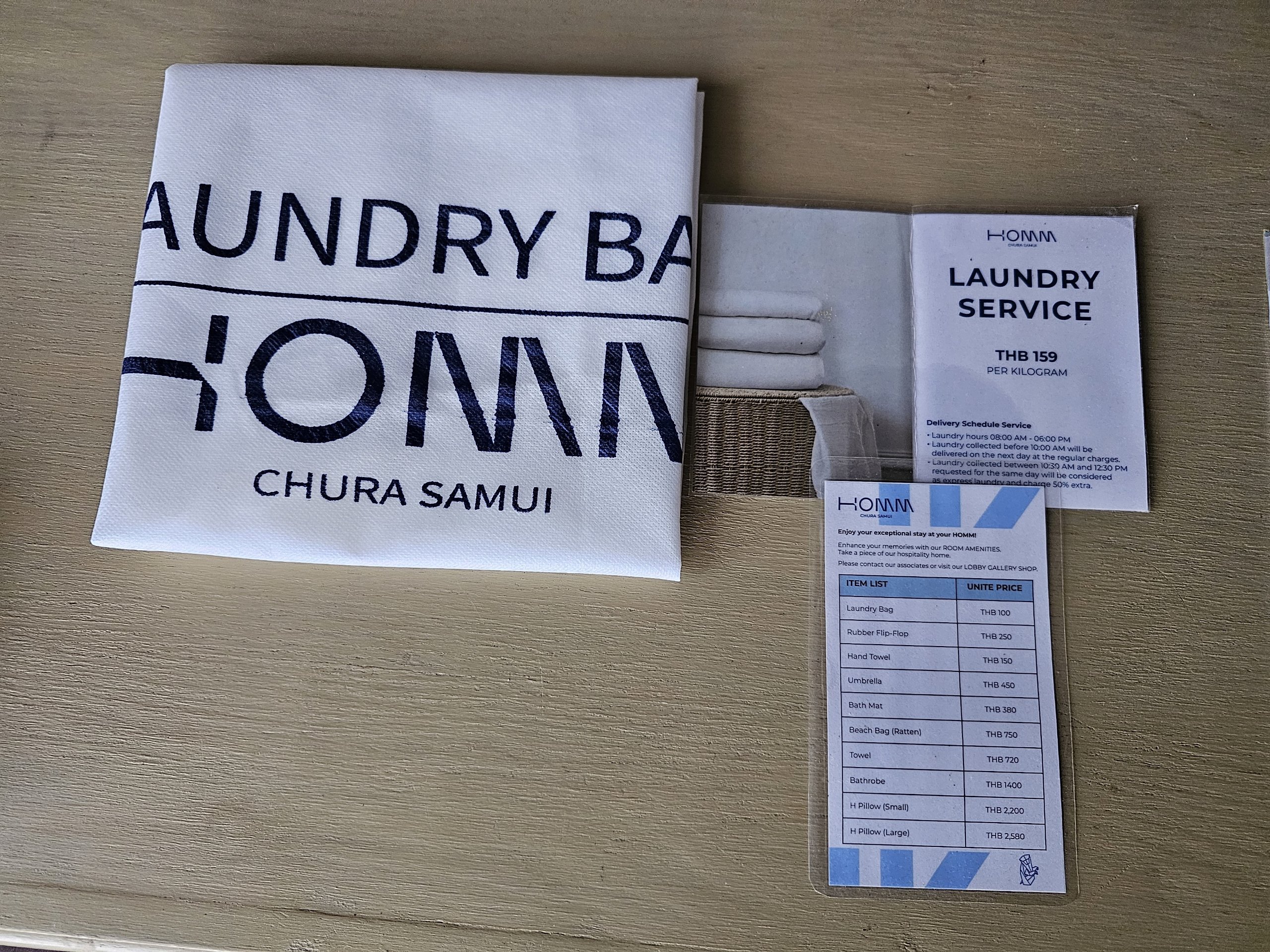- Serviço de lavandaria - para lavar 1kg de roupa suja custa 159 thb (para comparação, as lavandarias públicas em qualquer lugar na rua têm preços a partir de 50 thb por 1kg e há um grande número delas em Koh Samui)