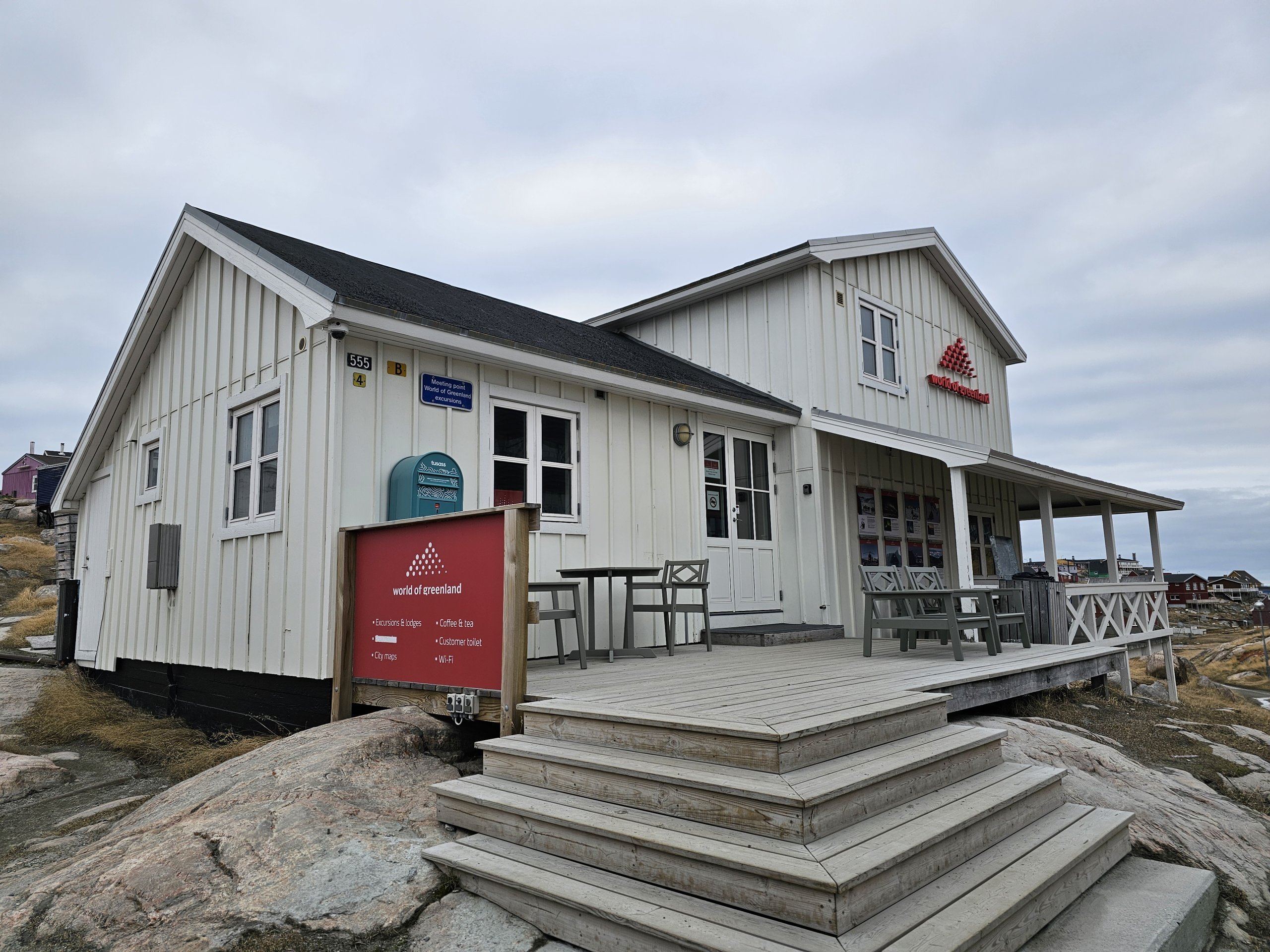 Seguindo as instruções do e-mail, o ponto de encontro é mesmo em frente ao escritório da agência World of Greenland, no centro de Ilulissat ( aqui).