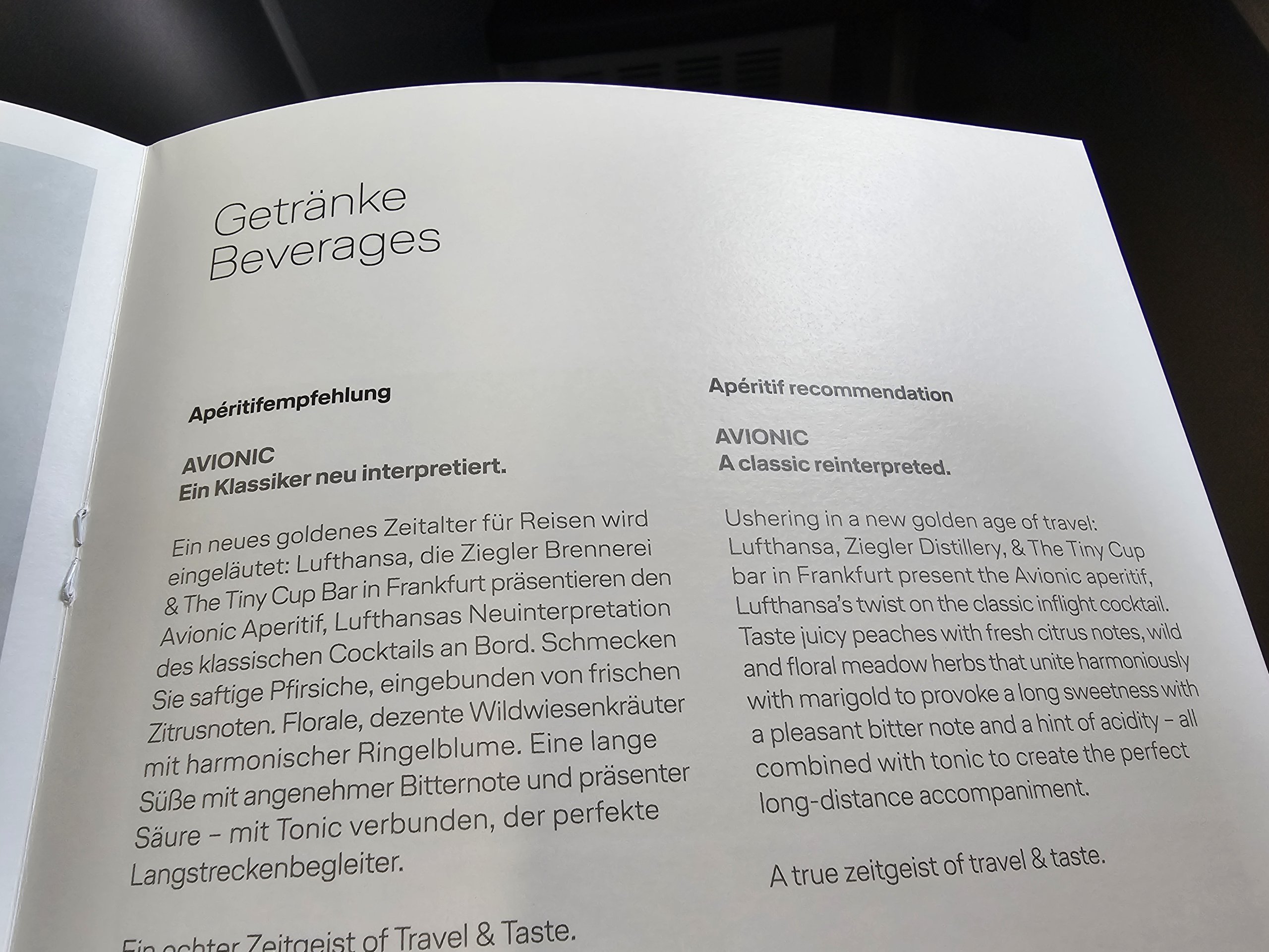 O primeiro serviço é antes do início, sob a forma de uma bebida de boas-vindas. Pode escolher entre vinho espumante, sumo, água ou o cocktail de assinatura Aviator.