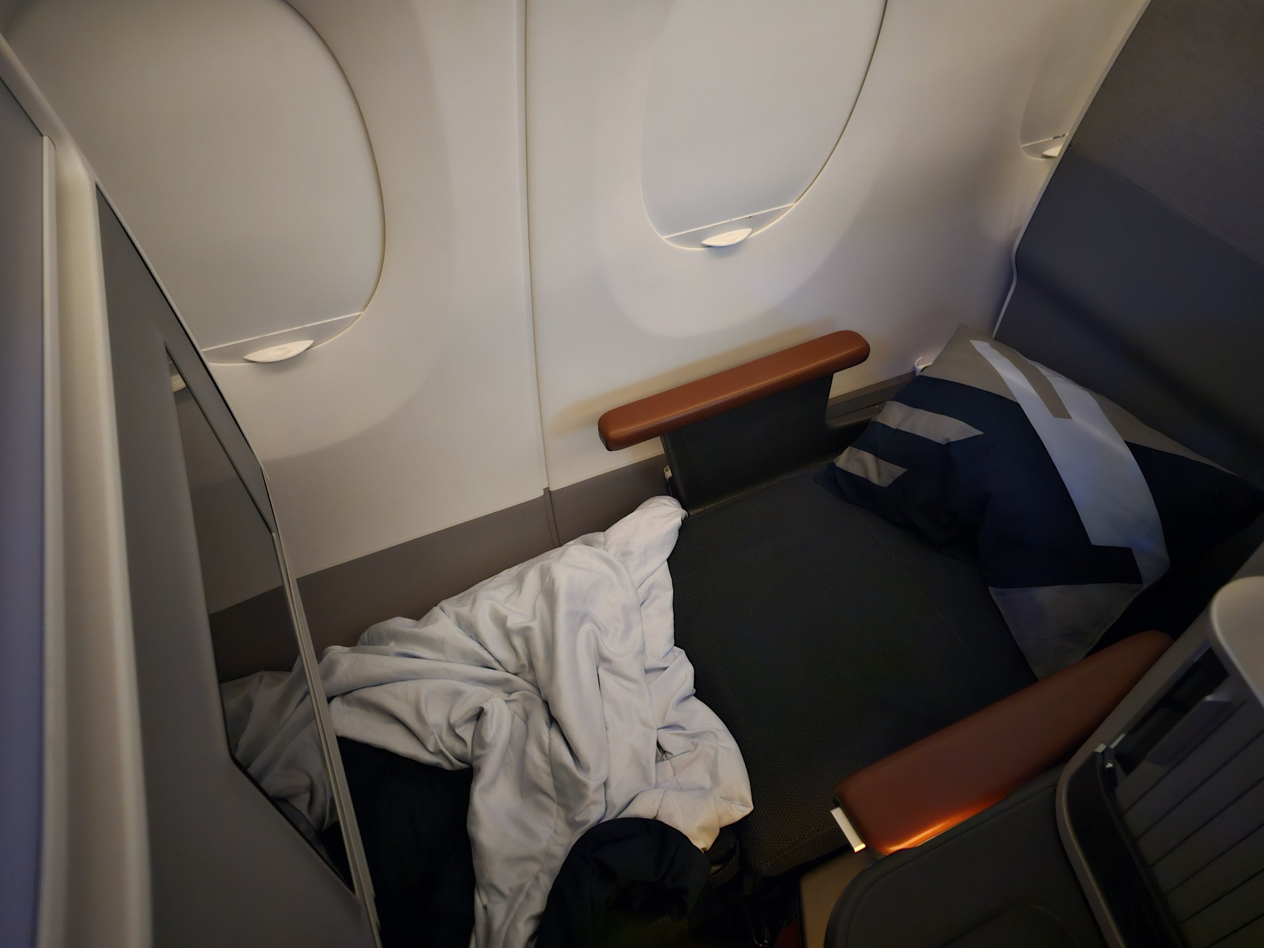No entanto, fiquei desapontado com a falta de chinelos, que são definitivamente práticos para voos diurnos.