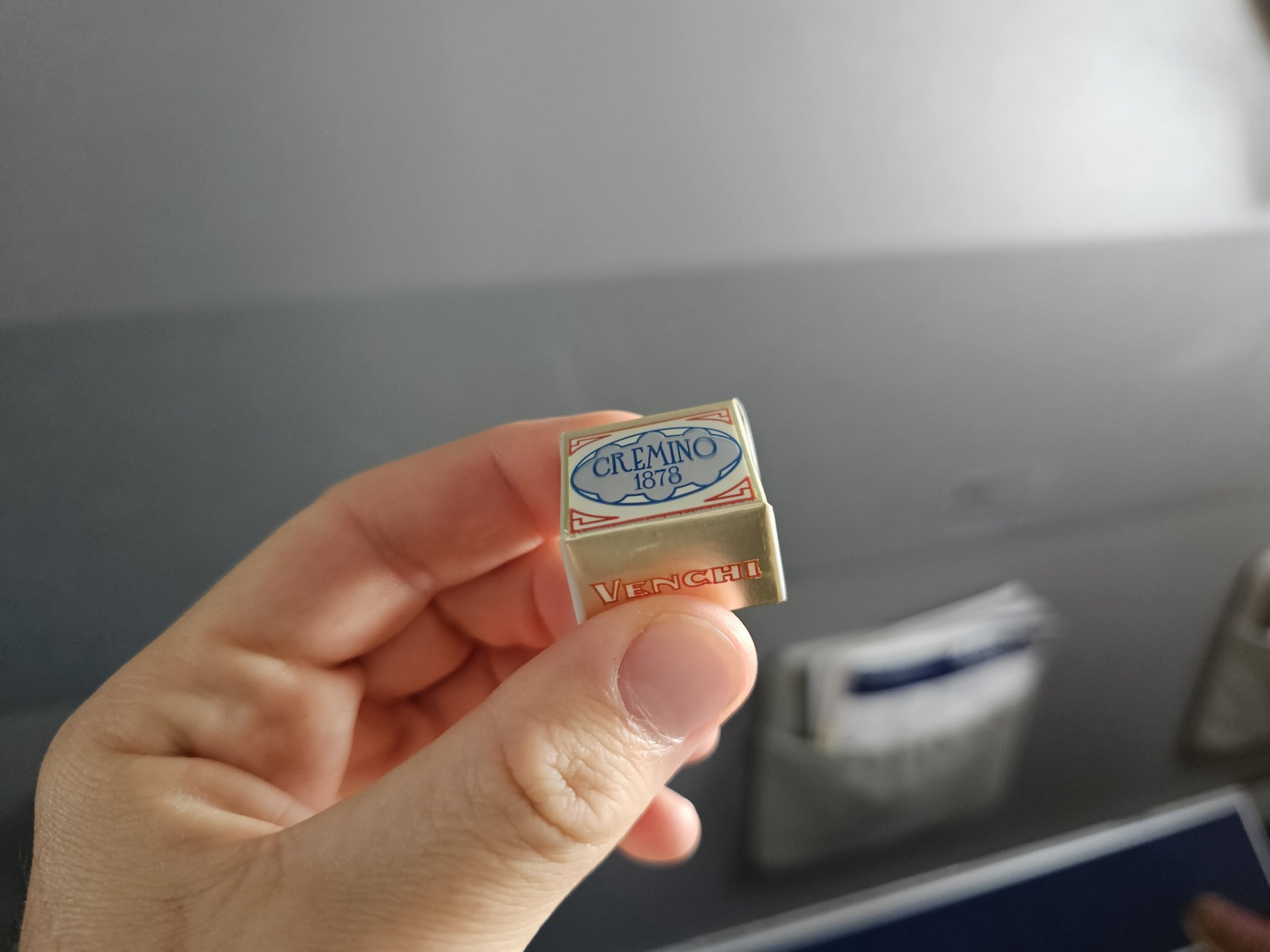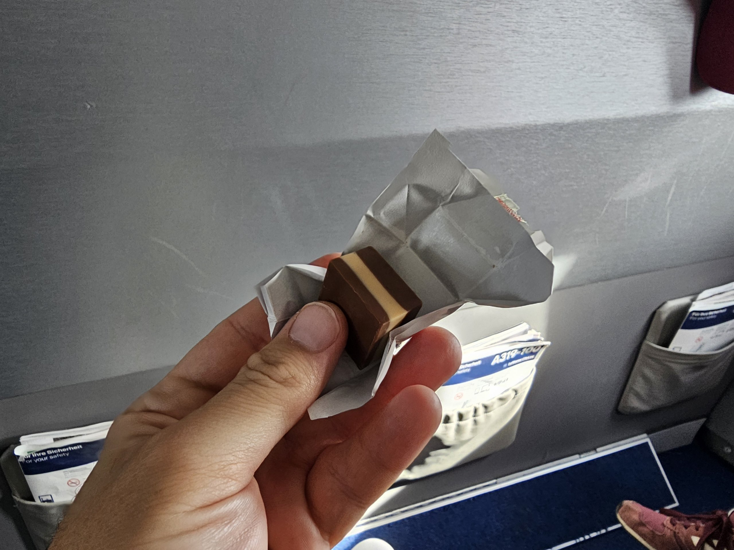 Antes da aterragem, ainda recebemos um pequeno chocolate elegante.