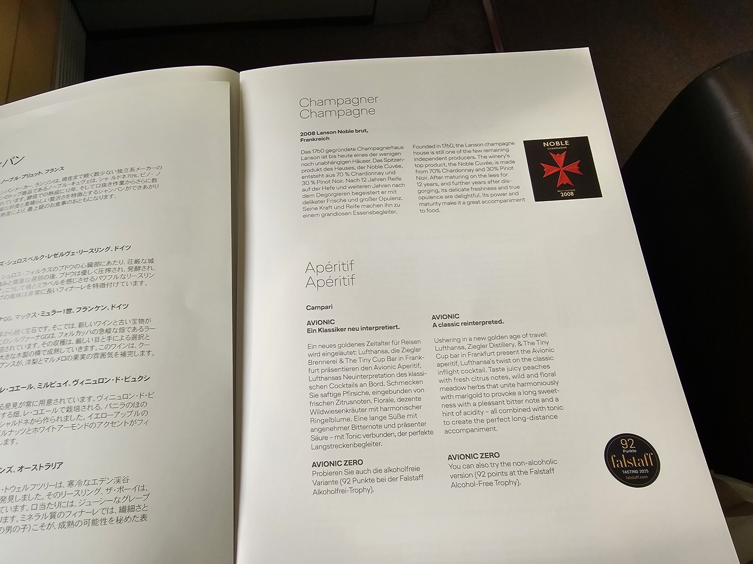 Antes da refeição principal, bebo o meu cocktail de assinatura preferido da Lufthansa - o Avionic.