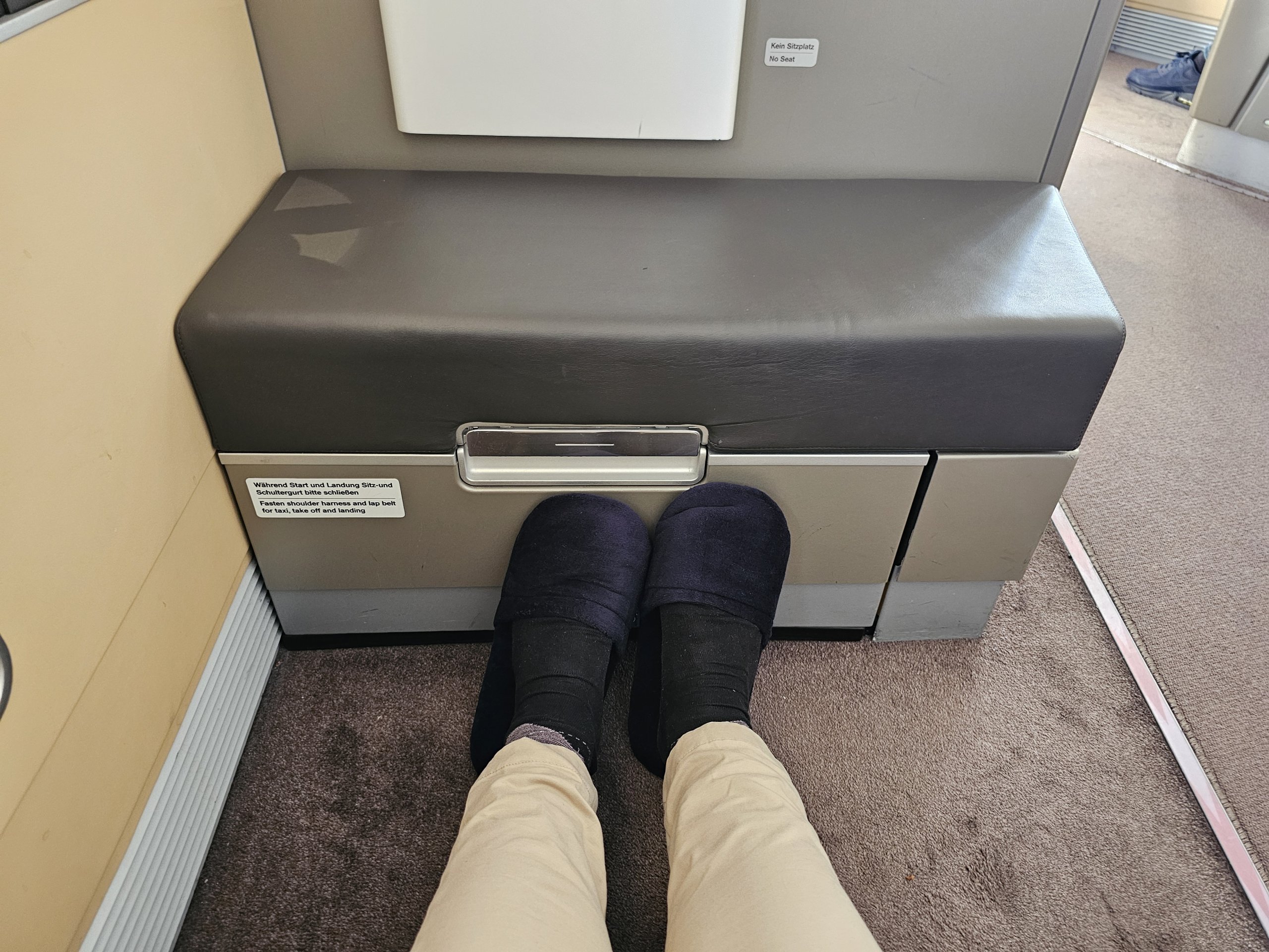 Em retrospetiva, porém, arrependo-me um pouco desta escolha. Embora os lugares 2A e 2K sejam os mais afastados de todos os outros, estão mesmo ao lado do balcão utilizado pela tripulação para o serviço.