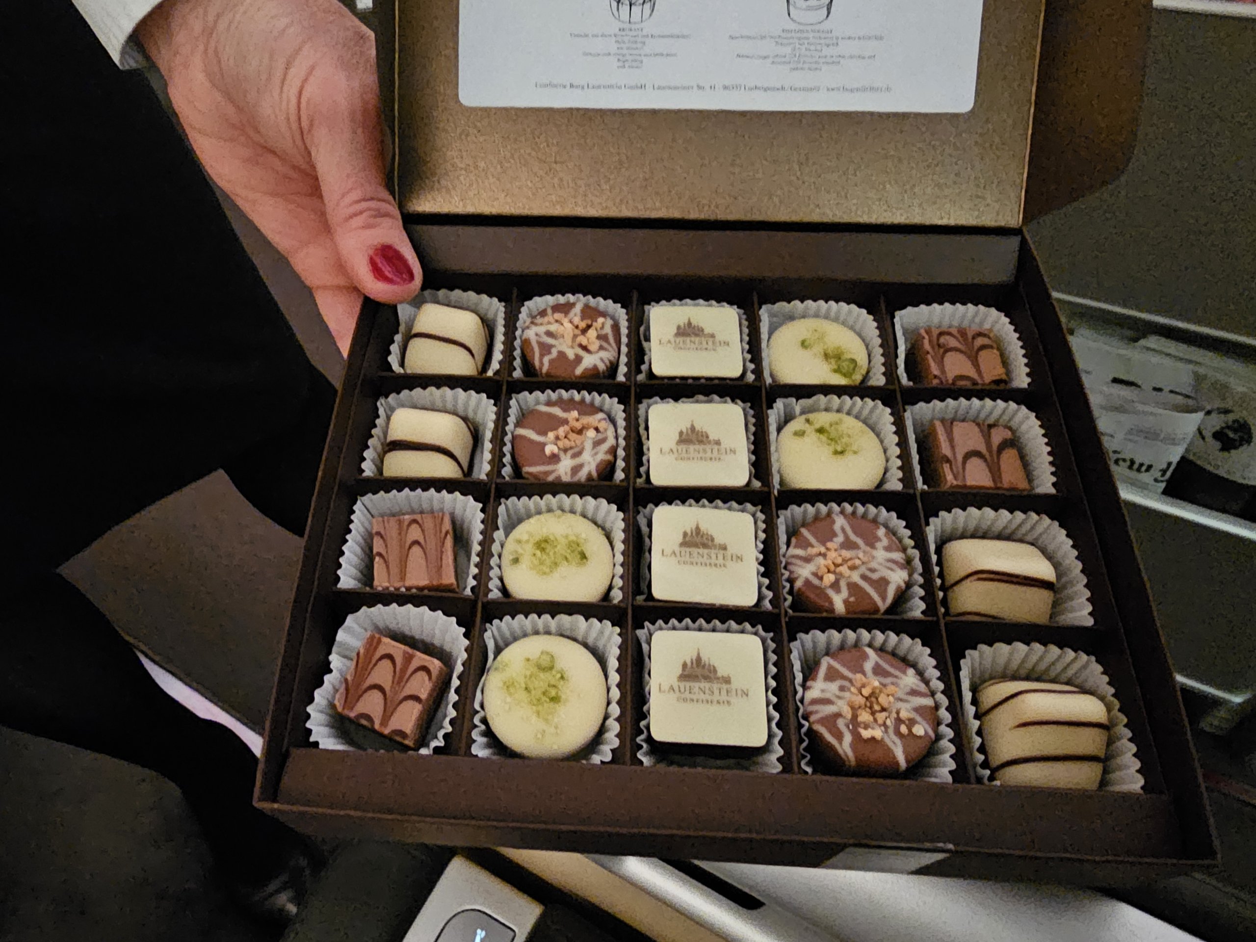 Para a última sobremesa, temos pralinés, que a Lufthansa tem sempre fabulosos.