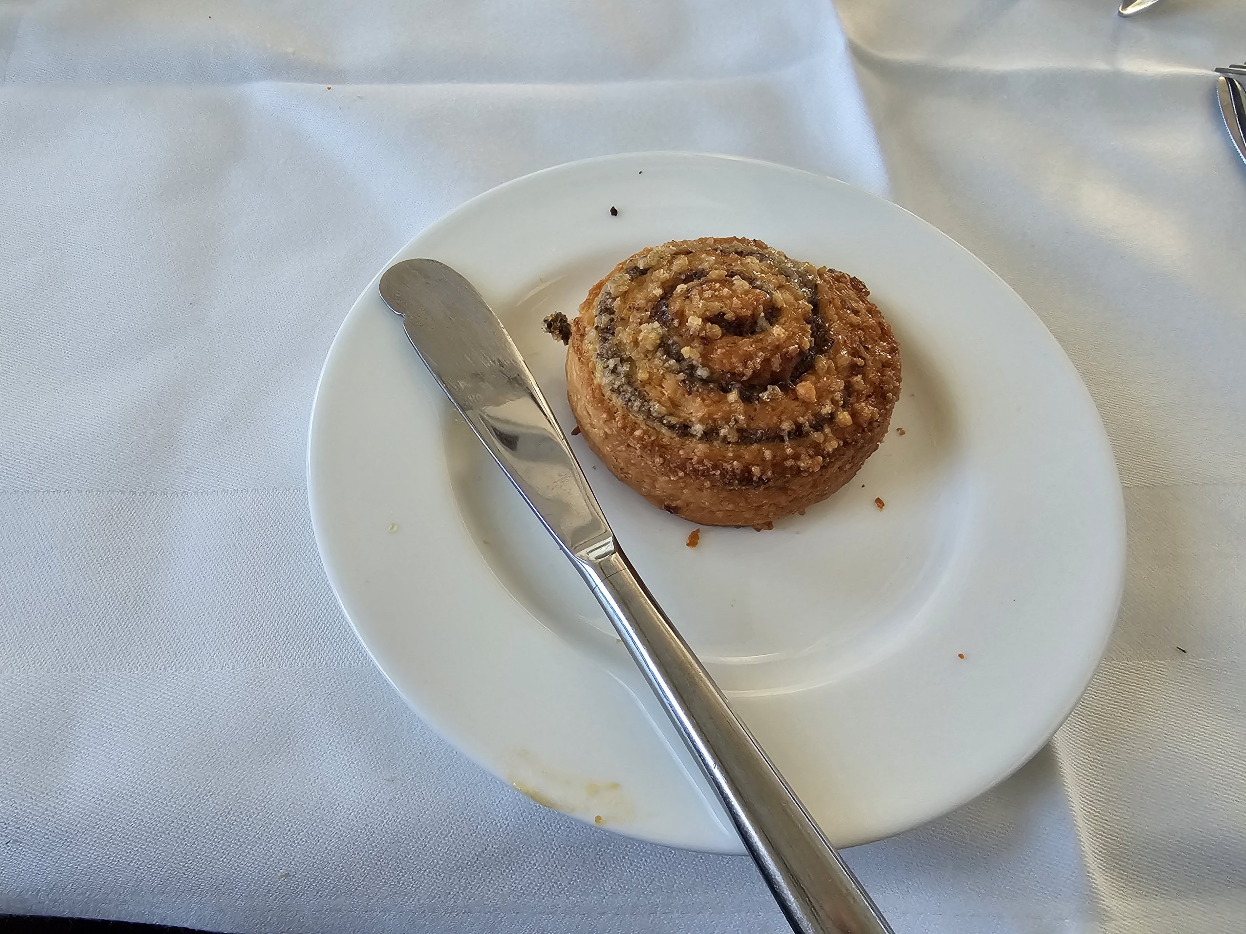 Eu opto por um pequeno-almoço mais saudável e fico perfeitamente satisfeito. Se ainda tiver fome, não há problema em pedir à tripulação mais itens do menu de pequeno-almoço.