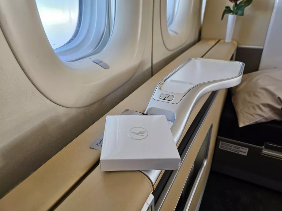 Já estou a escolher o lugar 2A com antecedência. Ao contrário da nova Allegris Business Class da Lufthansa, a seleção de um determinado lugar na First Class não implica qualquer custo adicional.