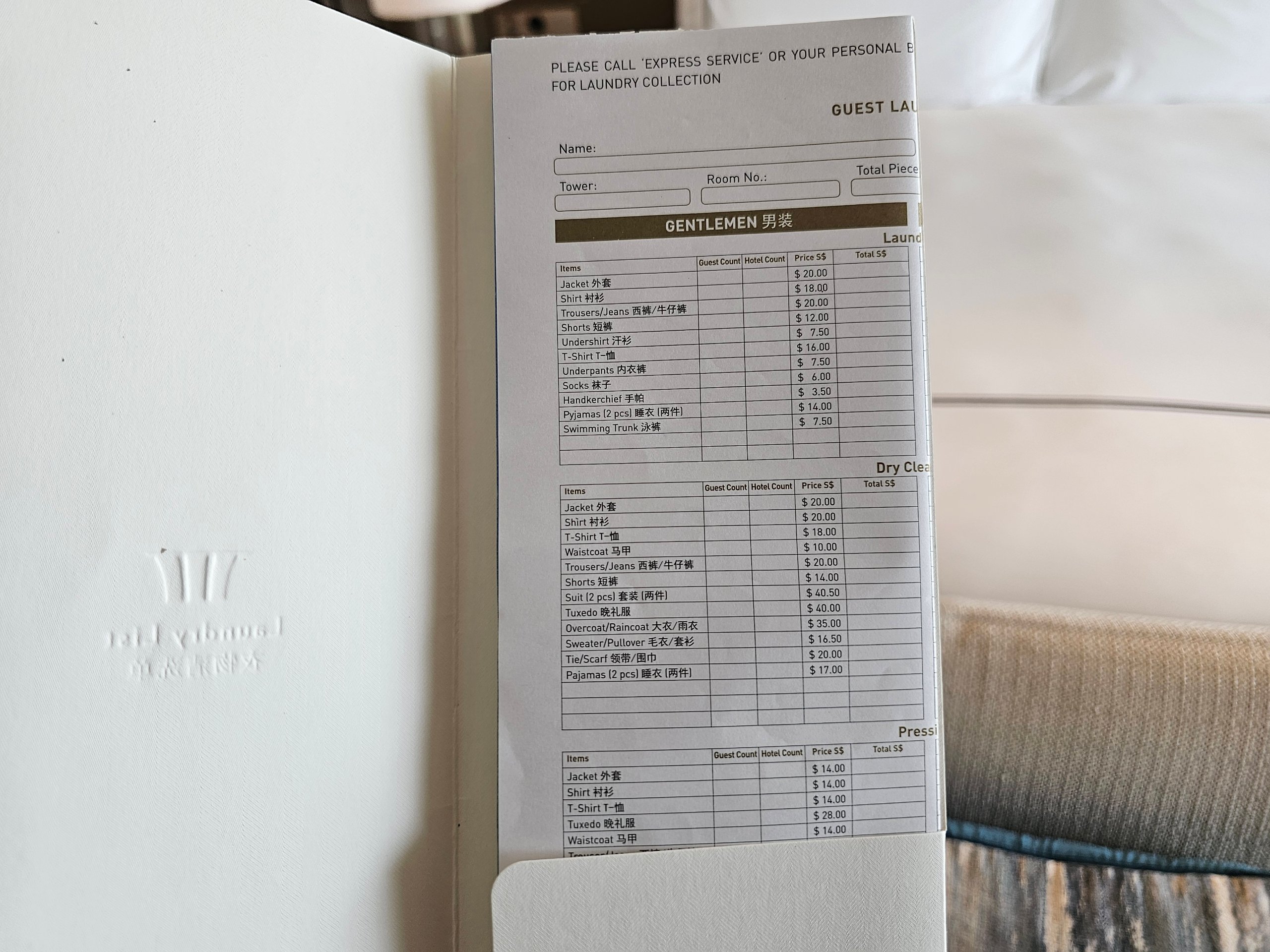 - Serviço de lavandaria - clássico. Deixa a sua roupa suja num saco no seu quarto e ela será lavada no dia seguinte