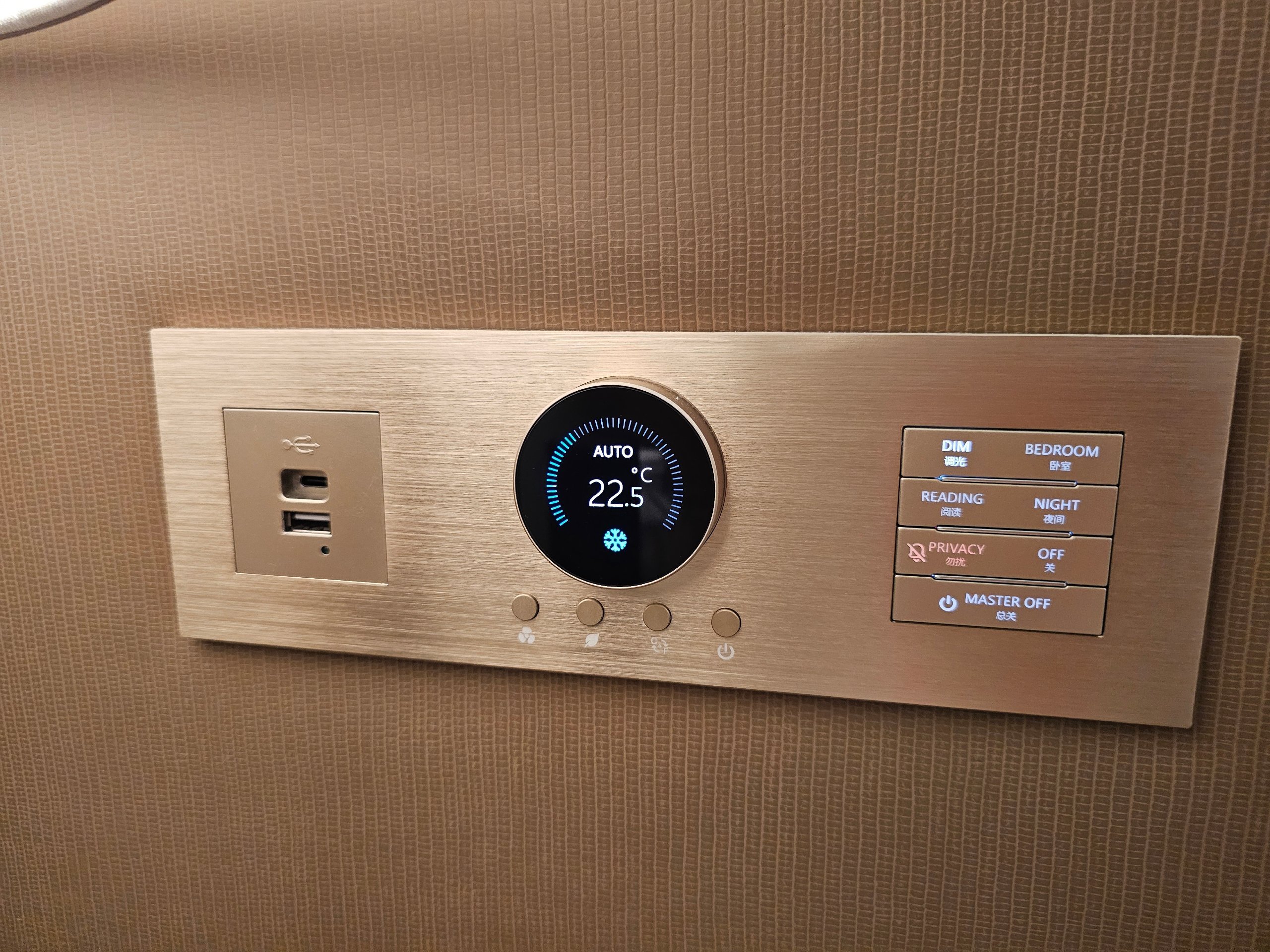 - cama de boa qualidade e ar condicionado silencioso (é possível controlar o ar condicionado a partir da cama, o que não é exatamente normal)