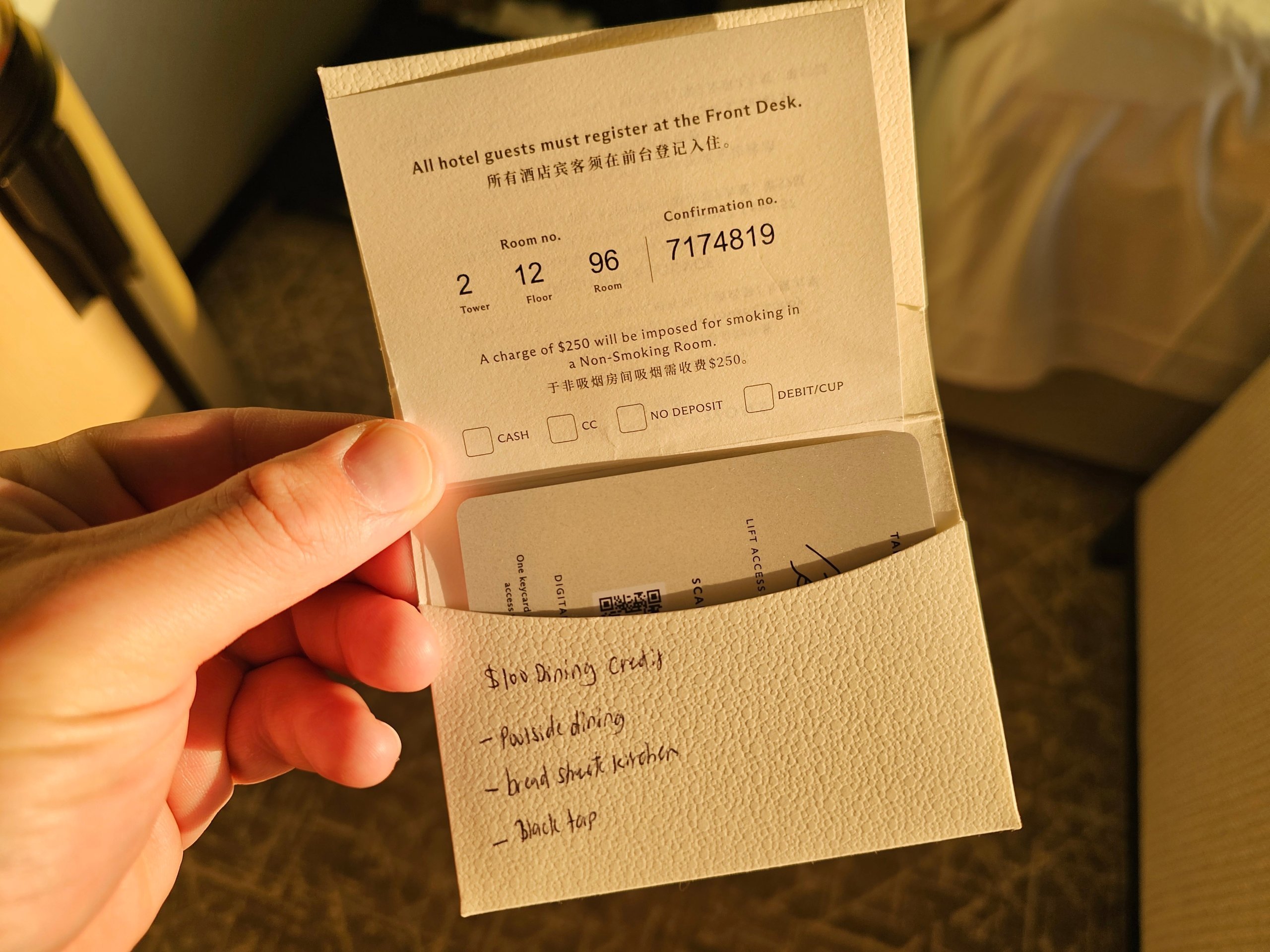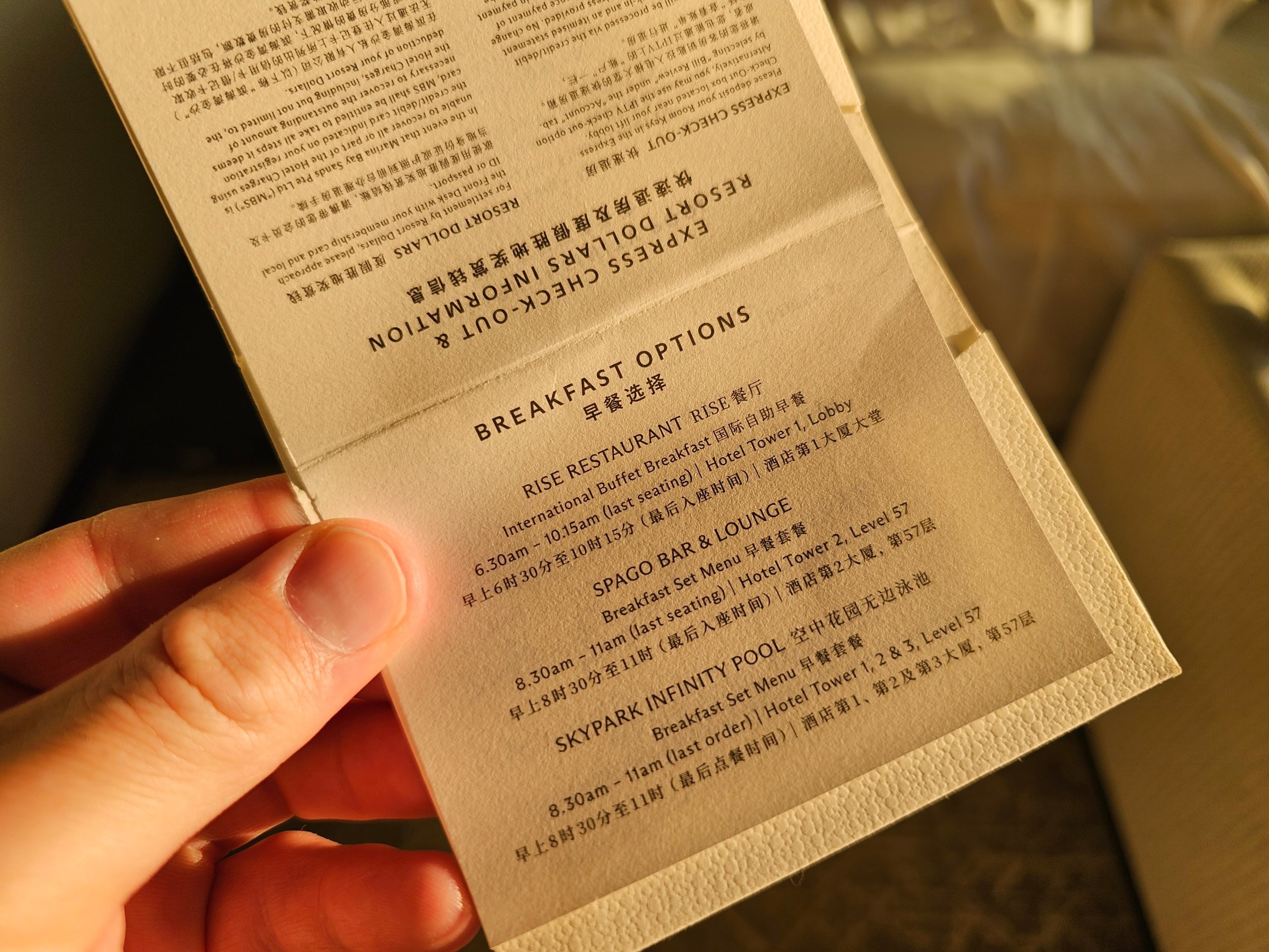 Além disso, incluía um crédito de 100 sgd para gastar em bares e restaurantes selecionados do hotel.