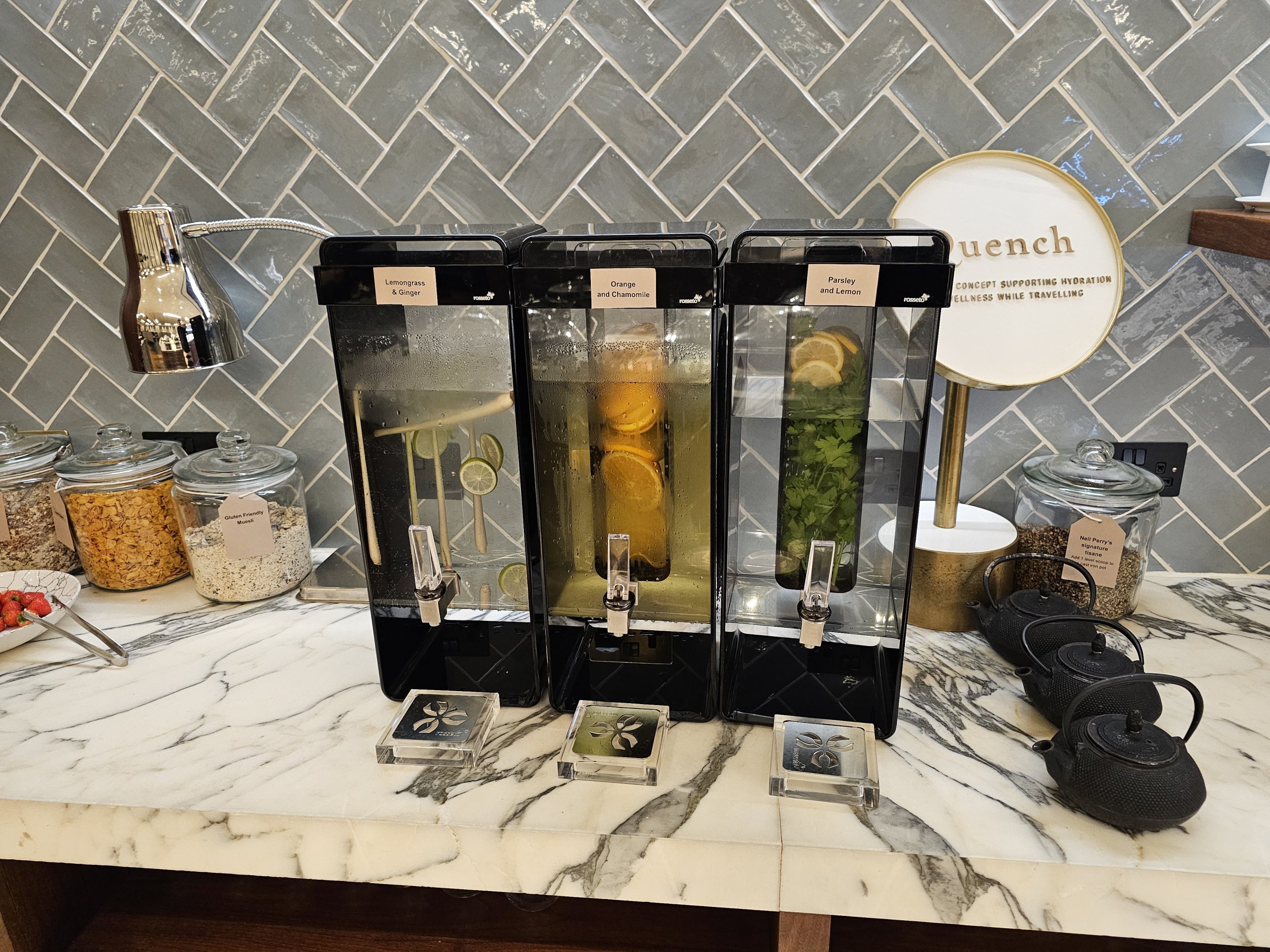 No entanto, há uma completa falta de balcões com outros doces ou talvez queijo ou fiambre. De um modo geral, a oferta gastronómica não é tão extensa como, por exemplo, a do salão Cathay Pacific, situado ao lado.
