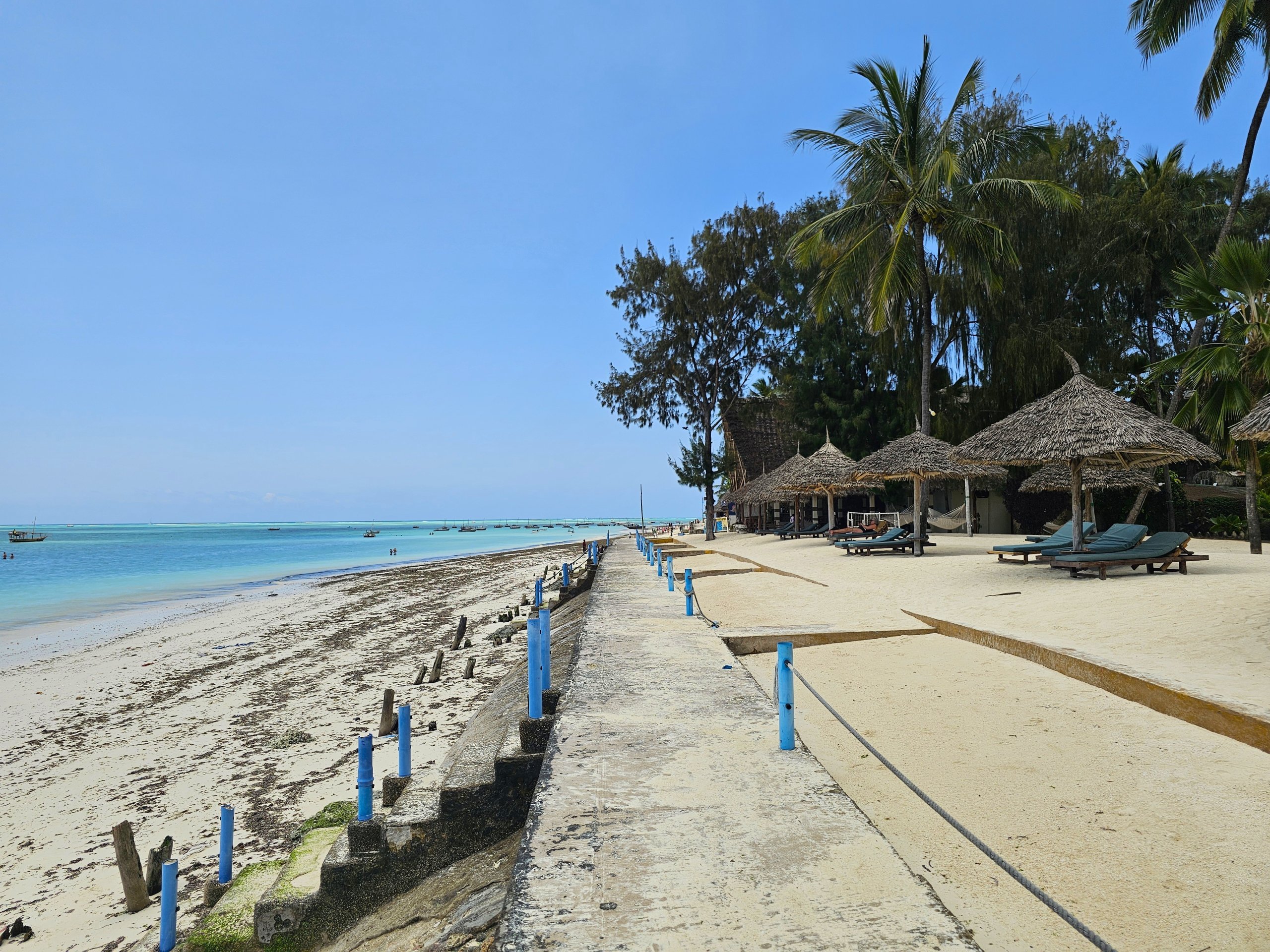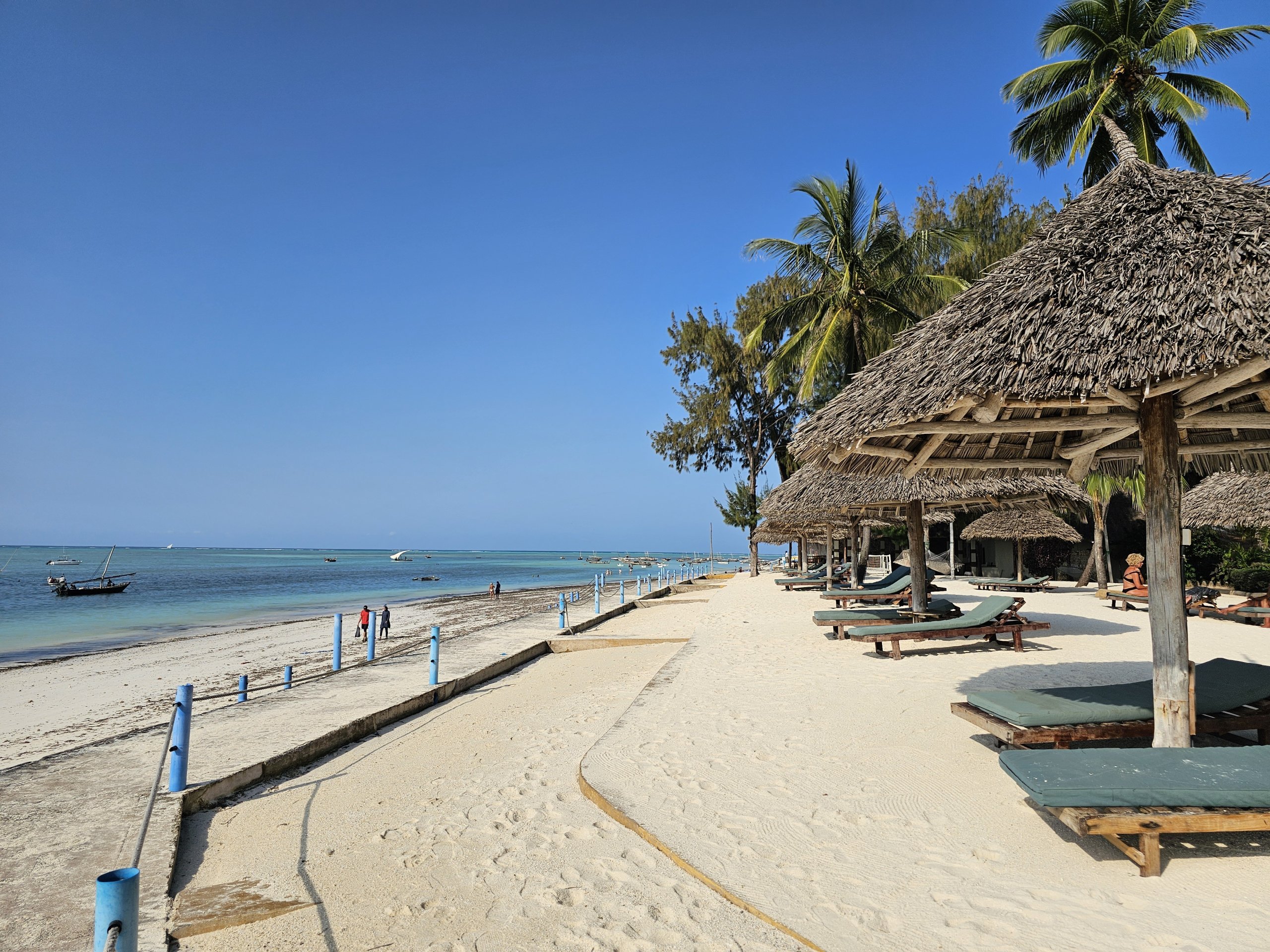 A praia em si é um pouco mais estreita e há mais algas do que na estância vizinha de Kendwa, mas nada que me tenha incomodado.