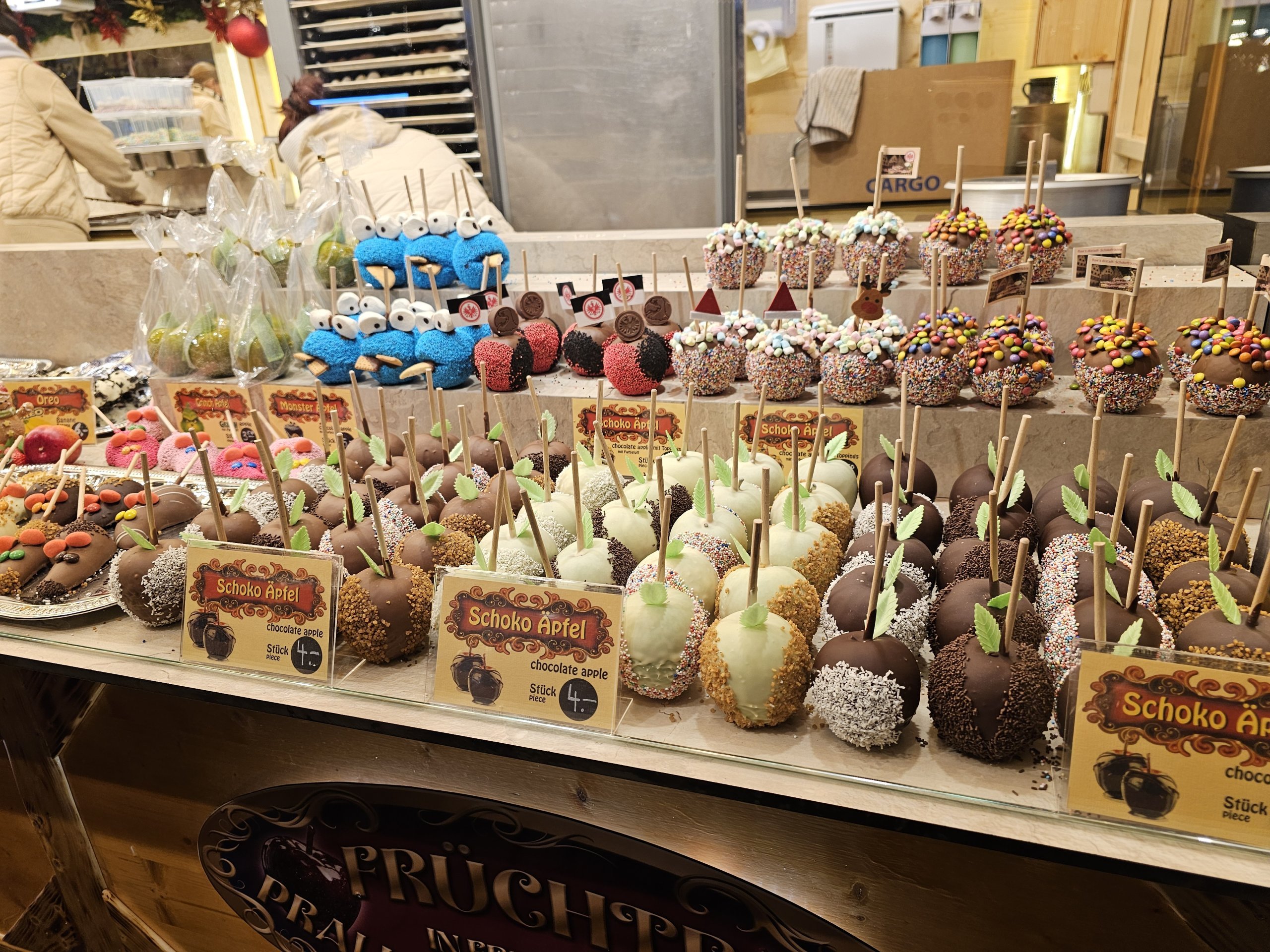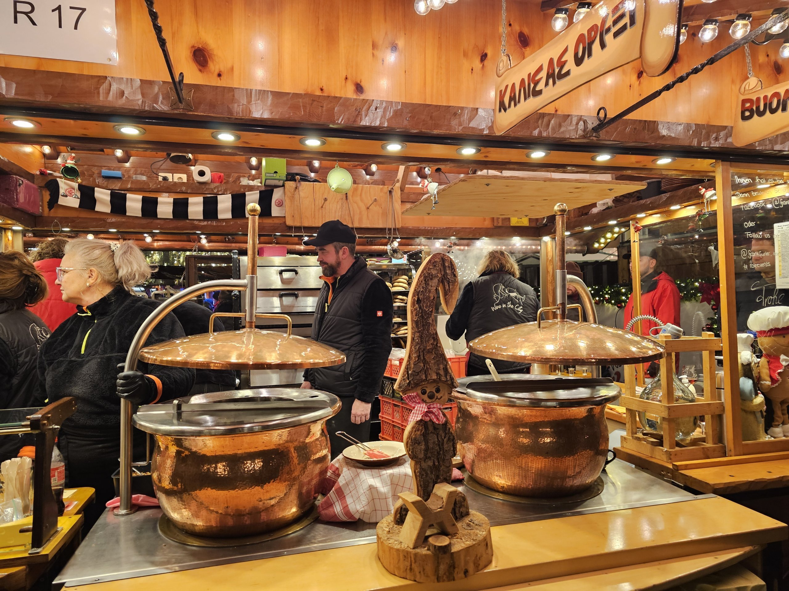 Entre na atmosfera mágica do mercado, onde o cheiro do tradicional Glühwein, dos bolos de Natal, dos strudels e das salsichas assadas se espalha pelo ar.