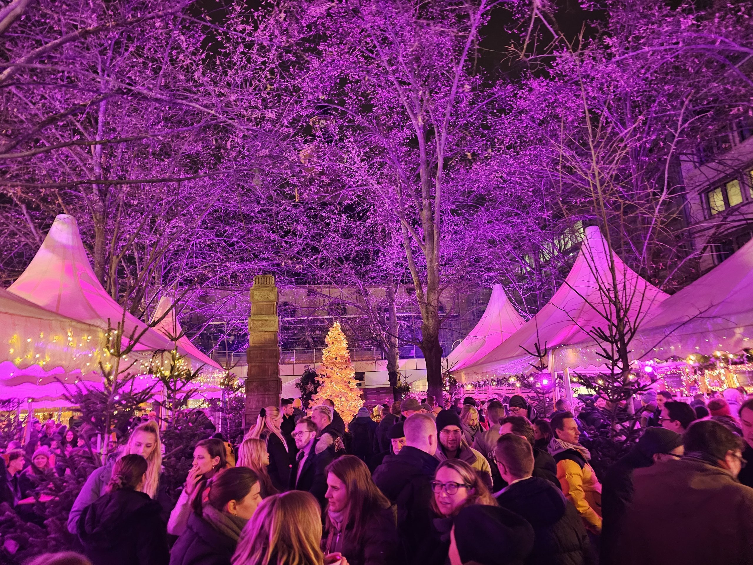 Irá descobrir um mercado de Natal completamente único no telhado do edifício da garagem Konstabler, no centro da cidade, perto da importante estação de metro e comboio Konstablerwache.