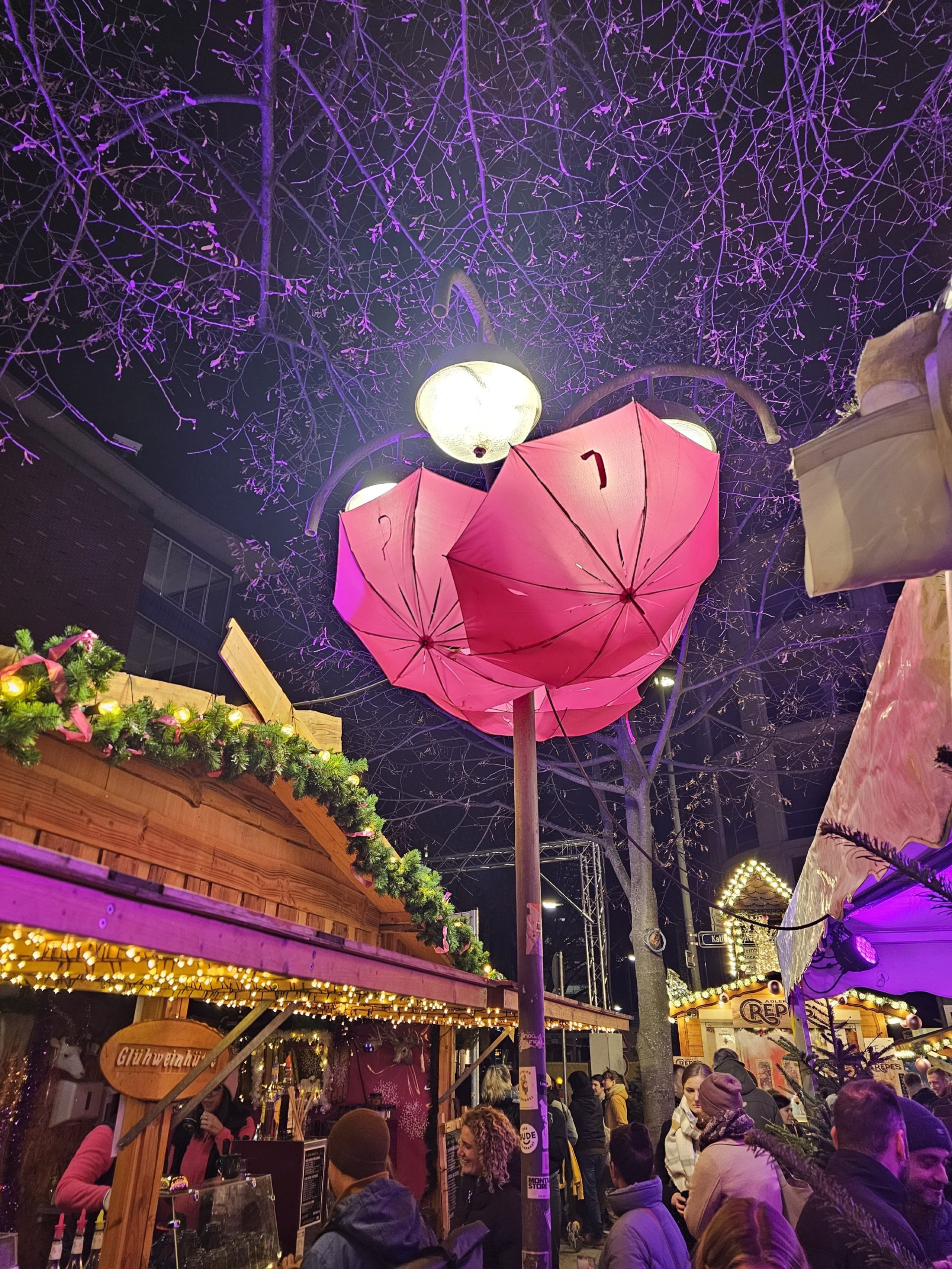 Se quiser experimentar um mercado de Natal local sem os turistas e sem as multidões extremas, dirija-se à extremidade de Frankfurt, que fica na extremidade de um parque florestal abaixo da torre de observação Goetheturm, com 43 metros de altura.