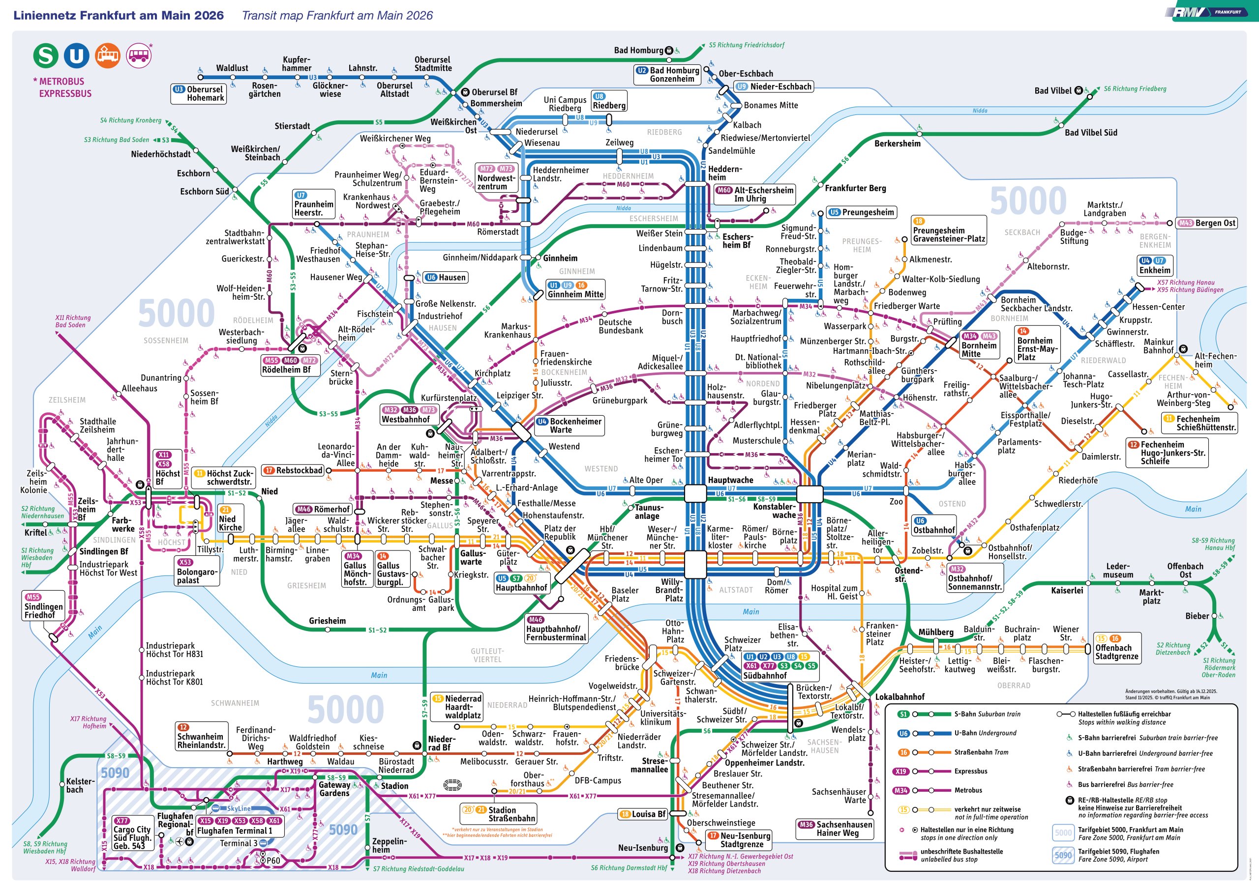 Uma lista detalhada das estações, linhas e horários pode ser consultada no sítio Web rmv.de.