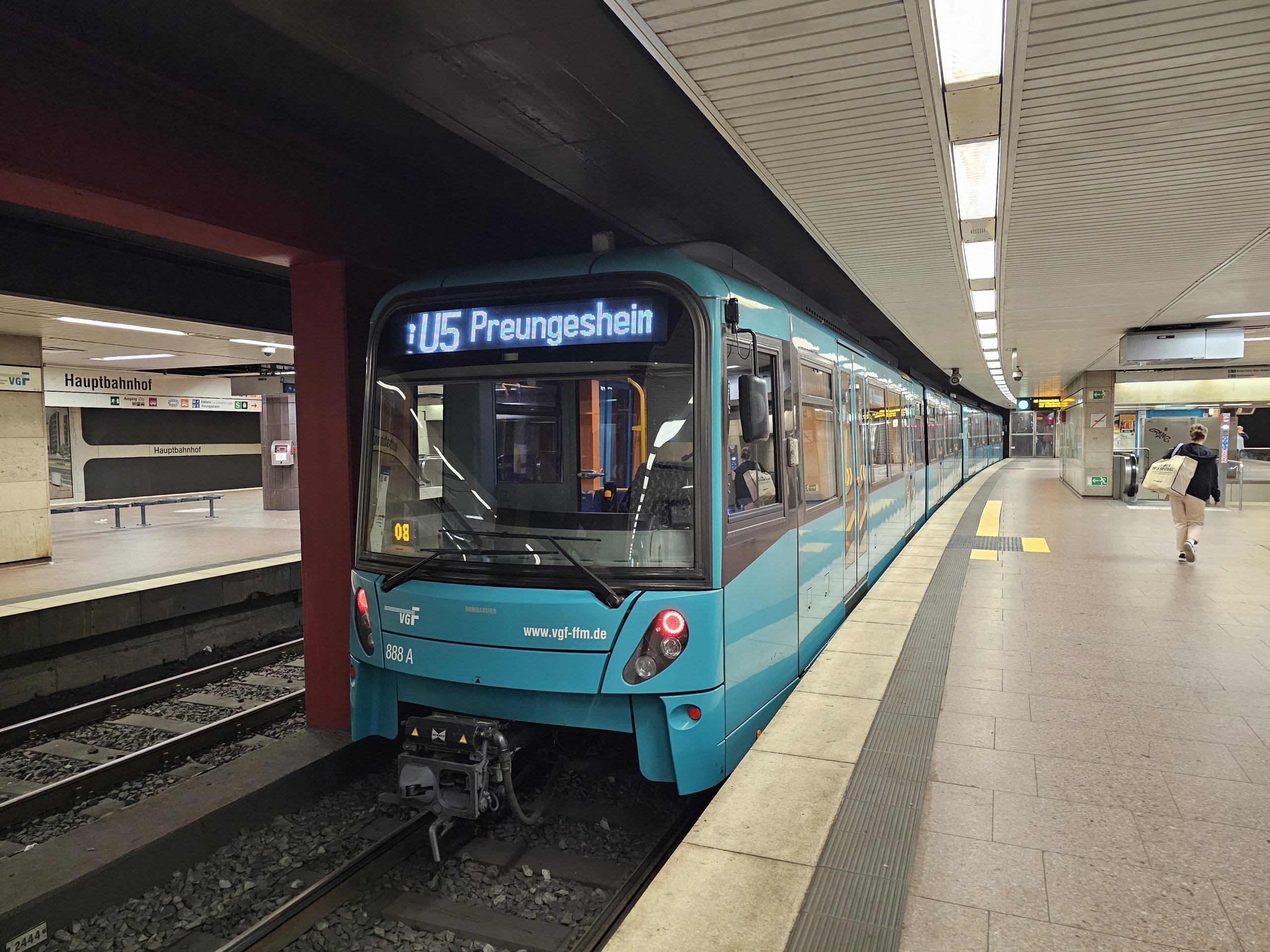 Para se deslocar em Frankfurt, pode utilizar o metro clássico (U-Bahn) e o comboio urbano (S-Bahn).