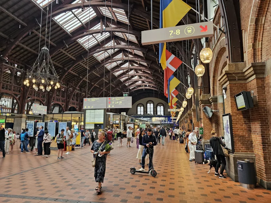 O centro da cidade de Copenhaga é atravessado de norte a sul por uma linha ferroviária principal com um serviço muito frequente, que passa a cada 2-10 minutos.