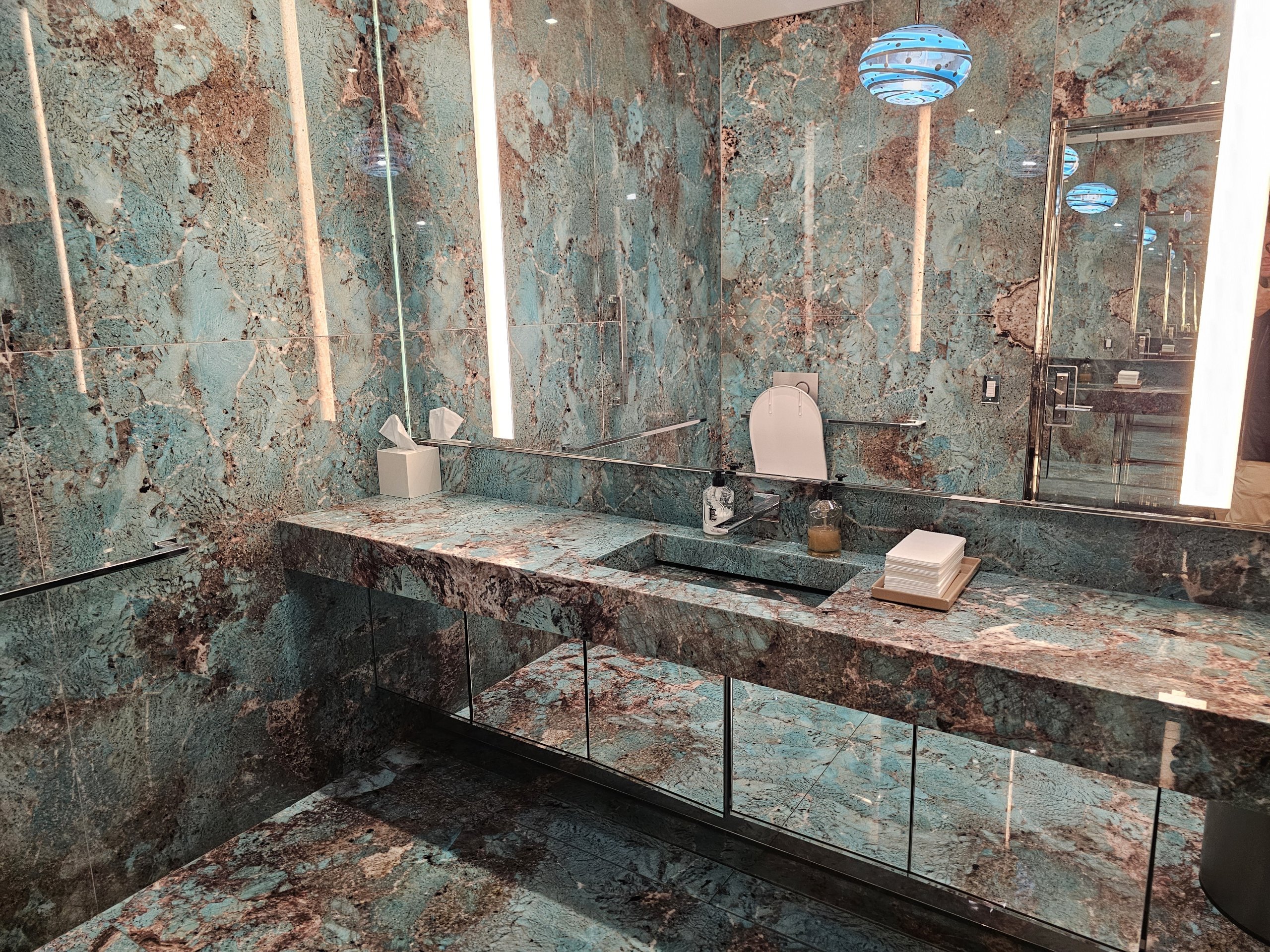 Os espaços são simplesmente deslumbrantes e até uma visita às casas de banho em mármore é um prazer.