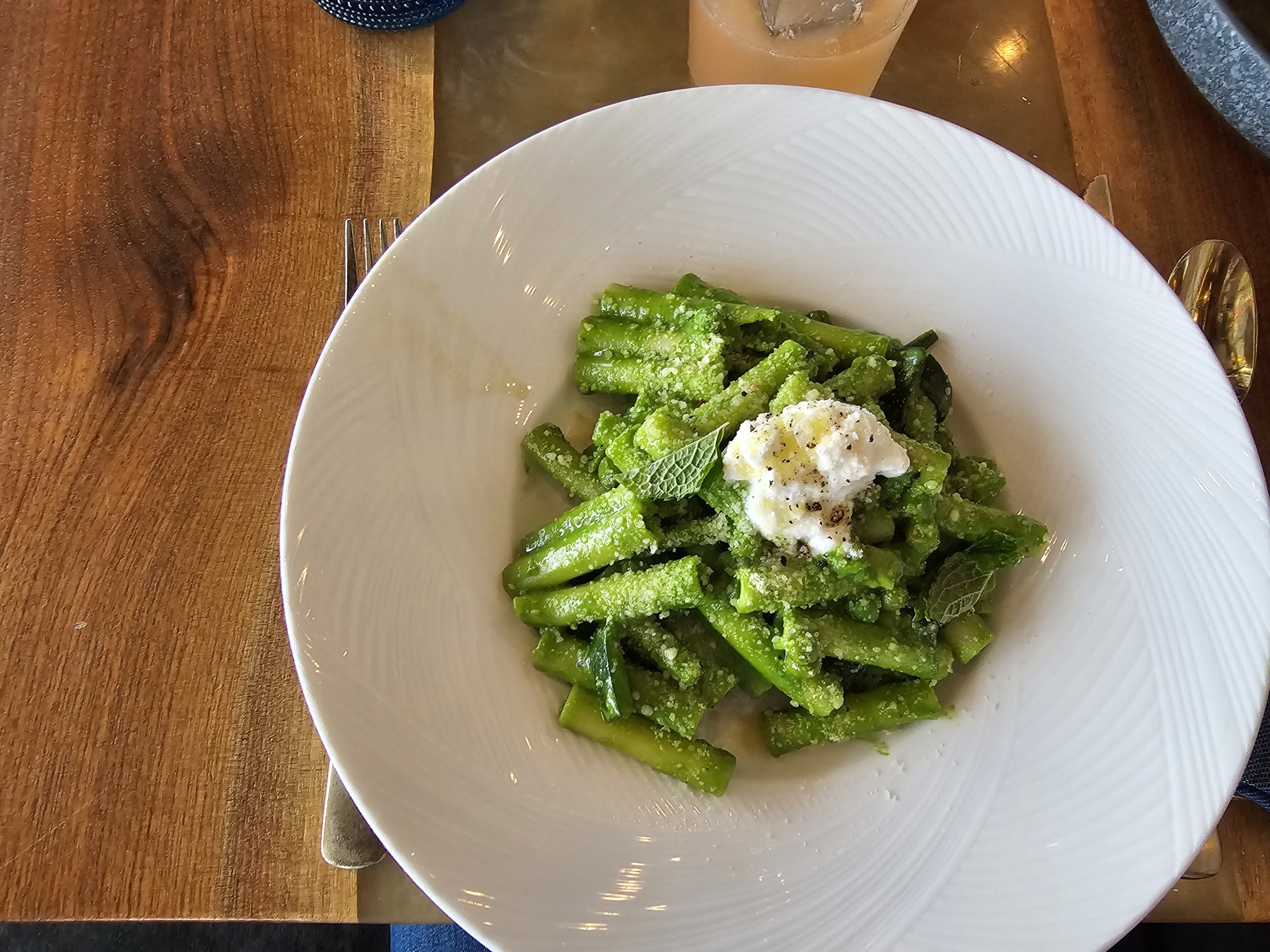O menu inclui cozinha americana moderna e, francamente, não ficámos muito entusiasmados com a comida. Ambos os pratos eram extremamente oleosos.