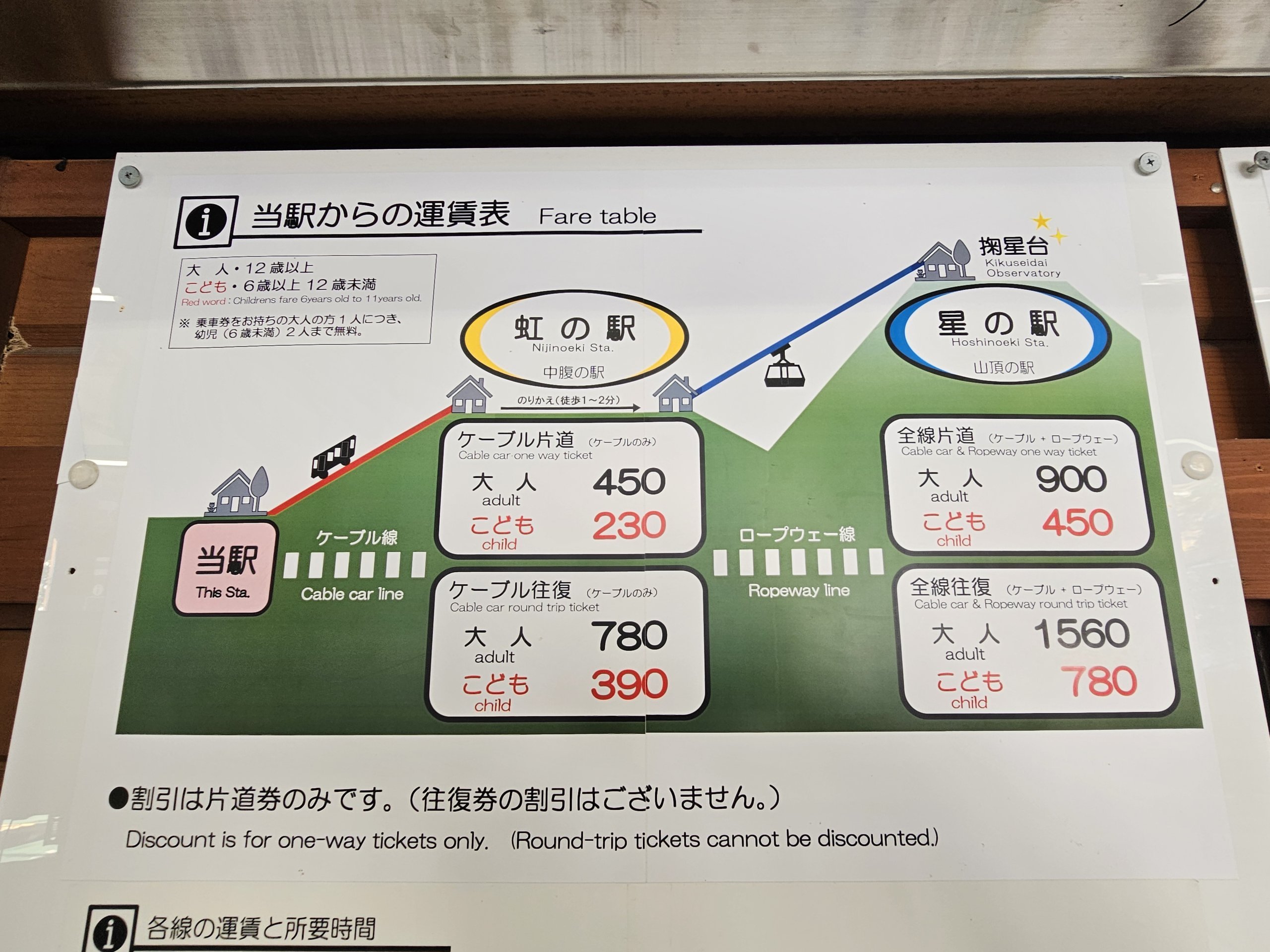 - 780 jpy - viagem de ida e volta apenas até meio da colina (funicular)