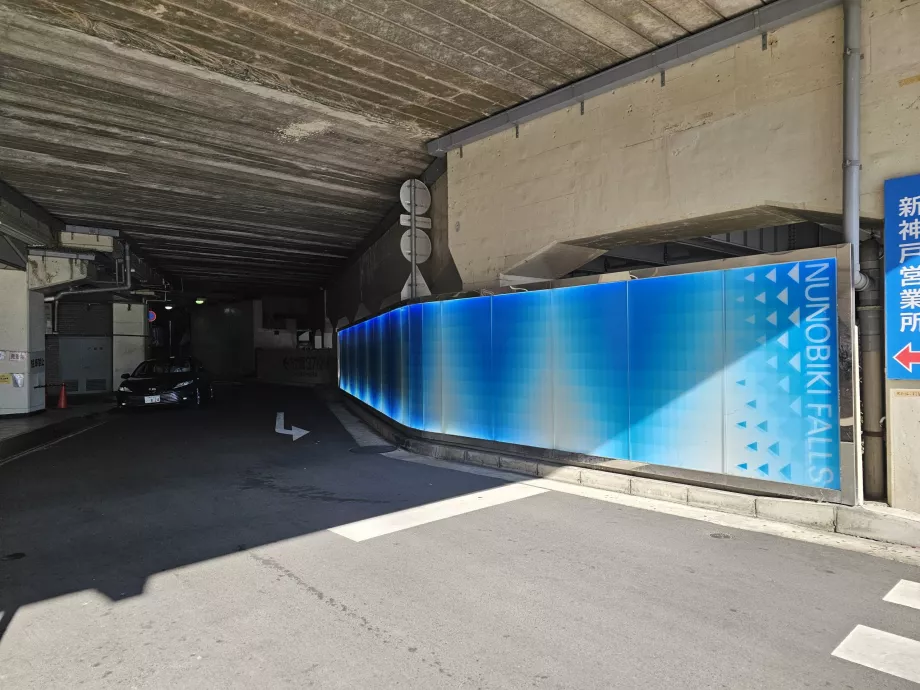 Primeiro, é preciso passar pela passagem subterrânea sob a estação, que está marcada em azul e diz "Nunabiki Falls".