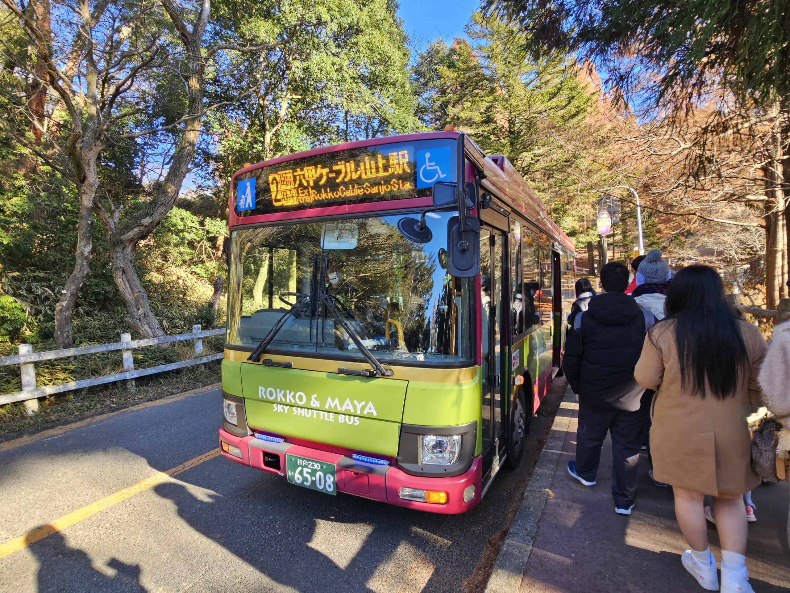 - Autocarro da linha 18 de Sannomiya para o teleférico (230 jpy) - circula uma vez a cada 30 minutos.