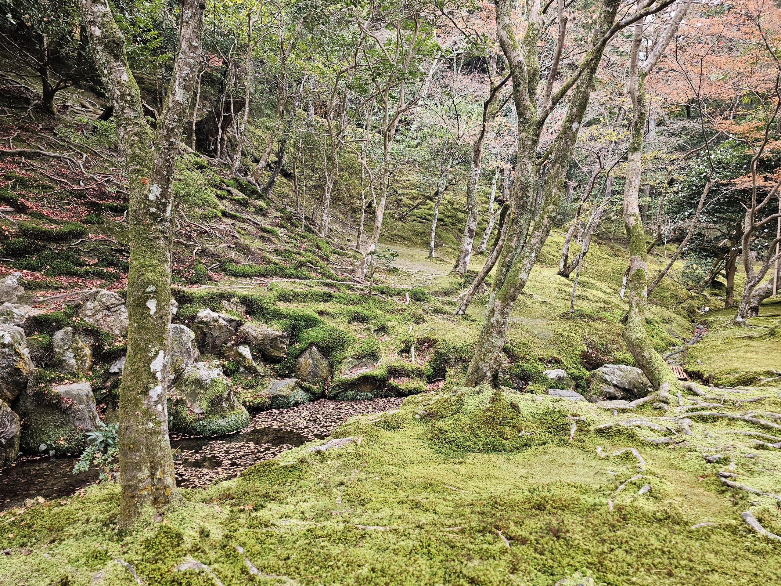 A vista sobre o complexo e o jardim de musgo merecem um ritmo mais lento.