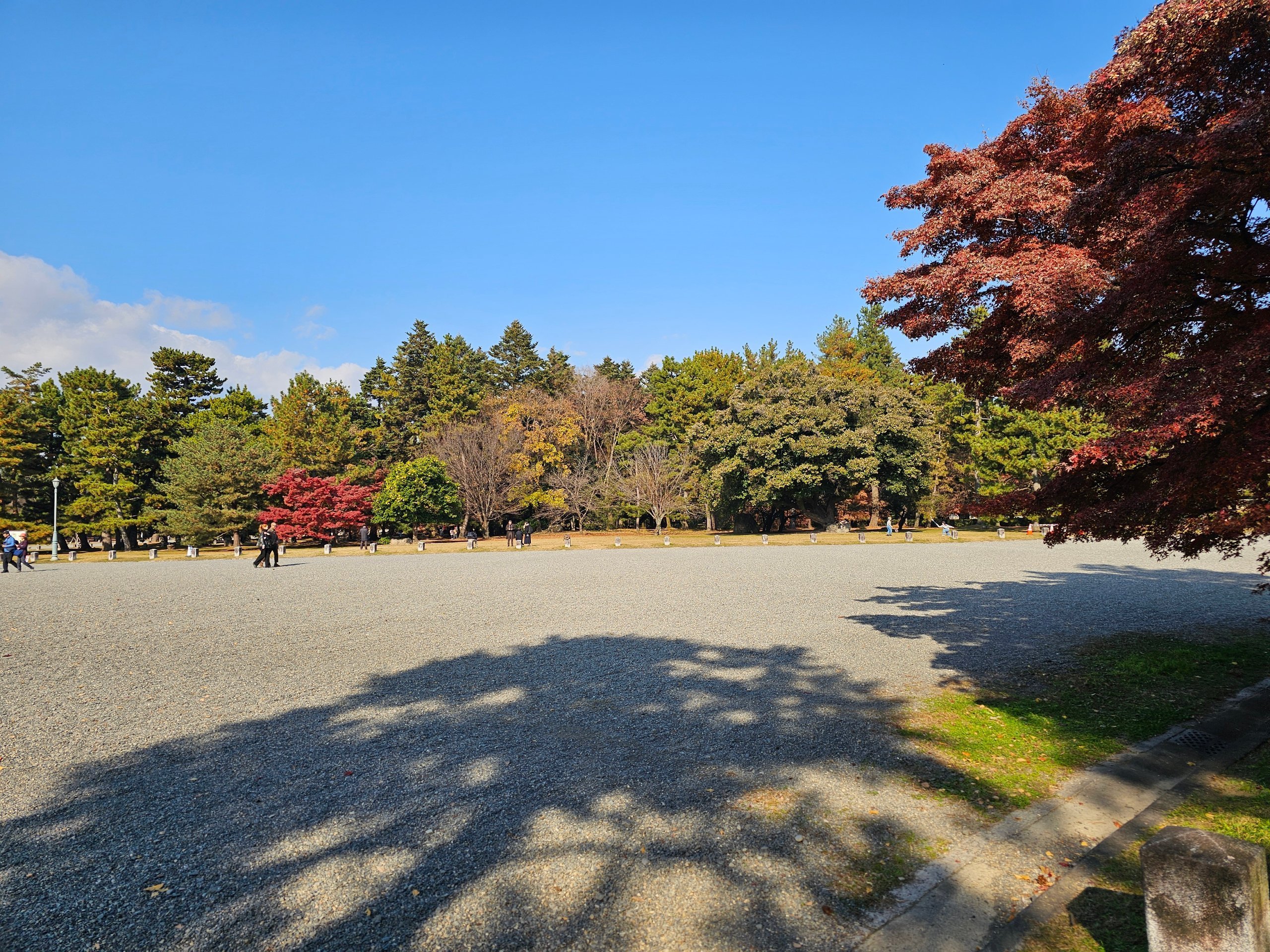Os jardins e o parque de Kyoto Gyoen formam um grande espaço verde, ideal para um passeio tranquilo entre as visitas às atracções turísticas mais movimentadas.
