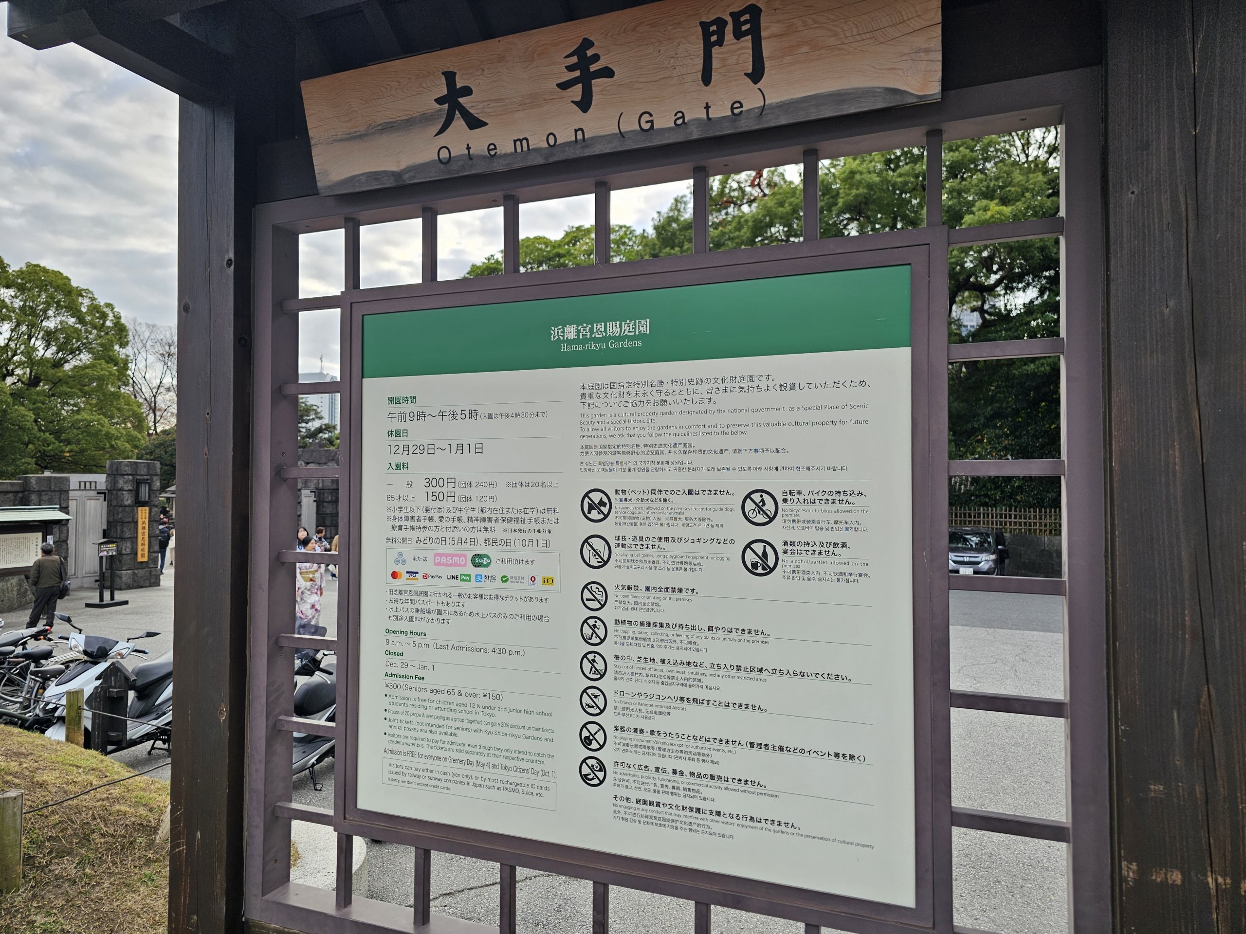 Há uma taxa de entrada para os Jardins Hama-rikyu de 300 jpy.
