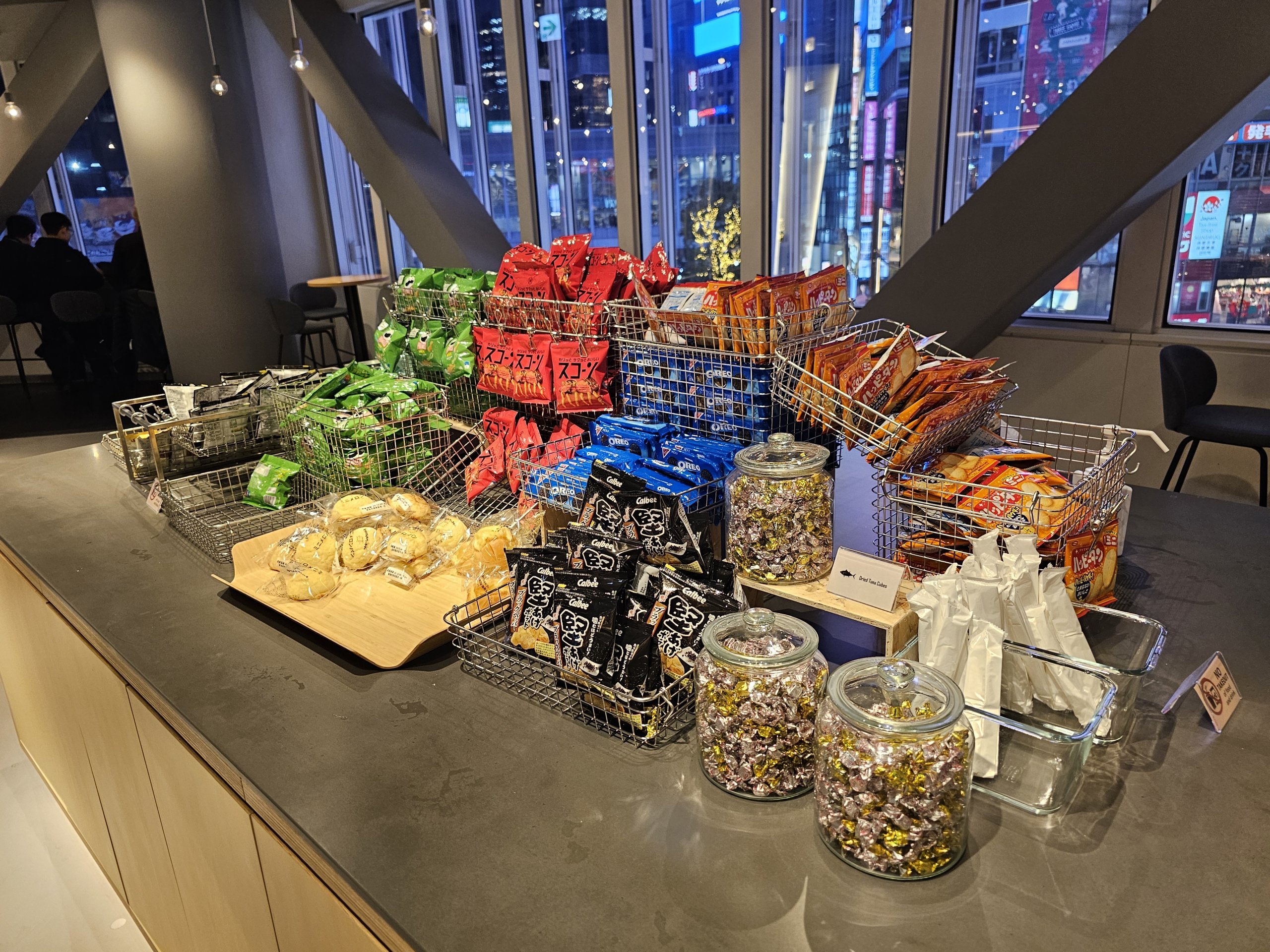Este espaço assemelha-se mais a um lounge de aeroporto. O preço da entrada inclui snacks simples, como bebidas frescas, café da máquina de venda automática ou pequenos doces.