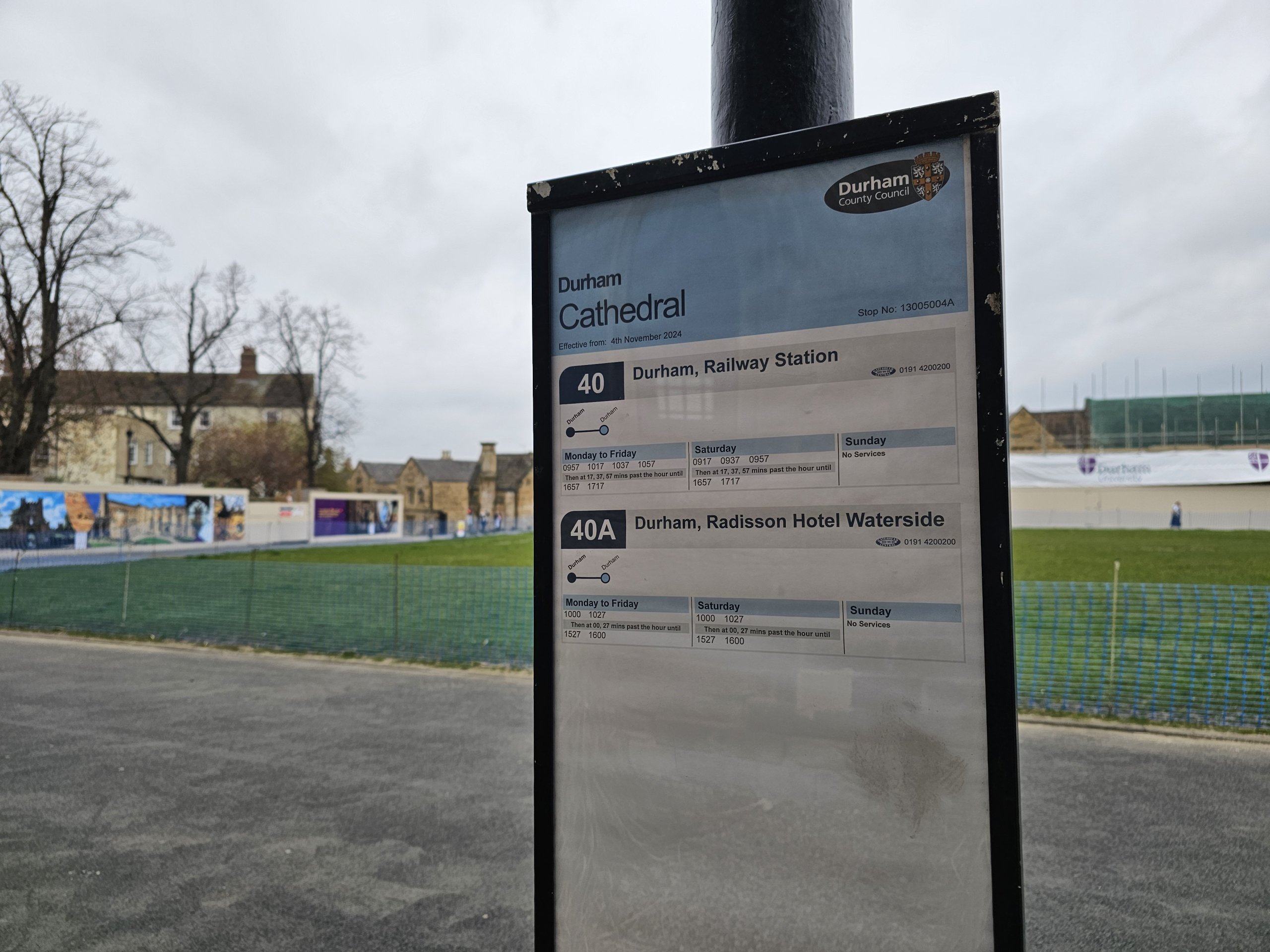Os autocarros são operados diretamente pela Câmara Municipal de Durham e as informações podem ser encontradas em durham.gov.uk/CathedralBus
