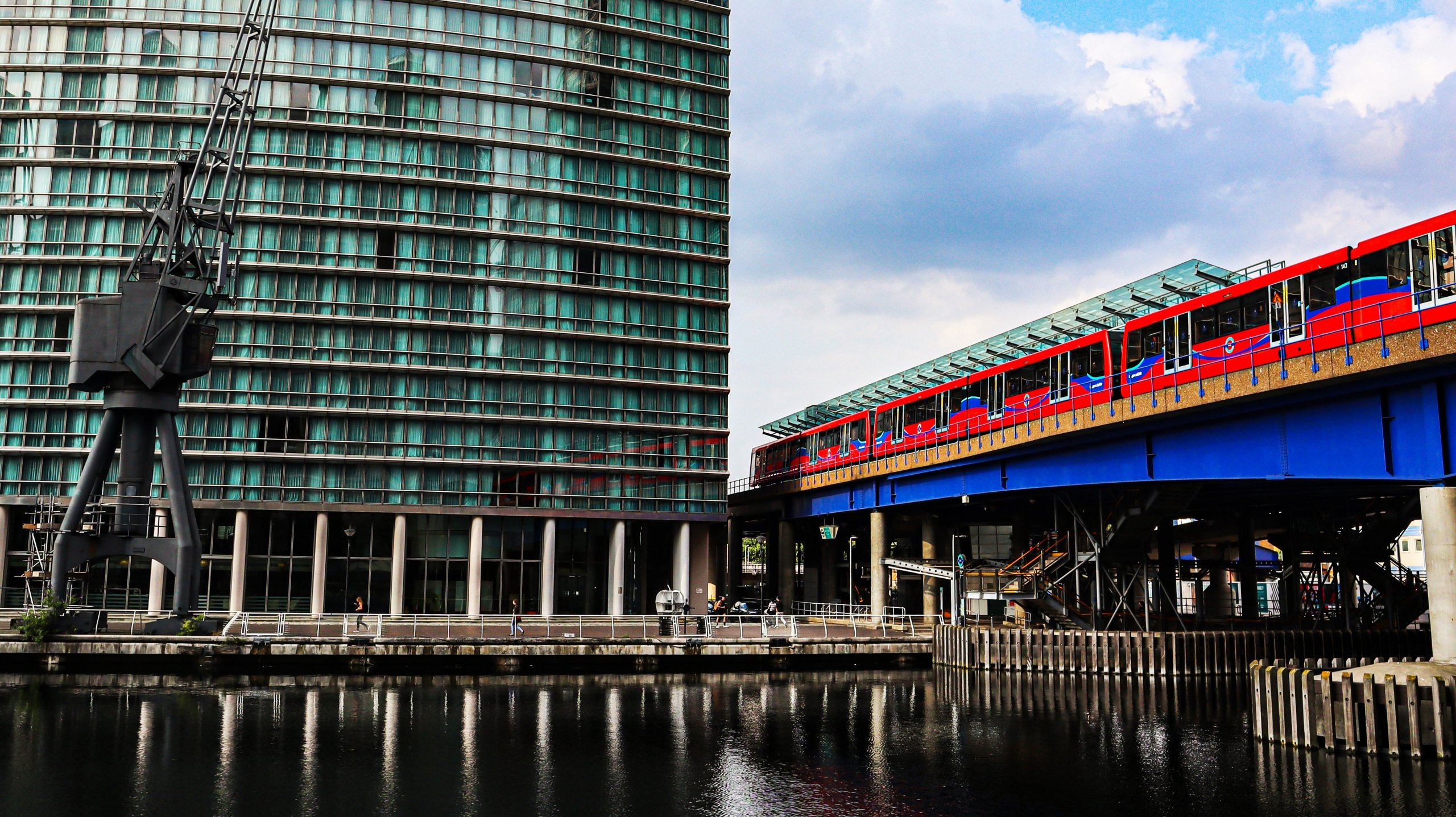 A zona leste de Londres, na moderna área de Canary Wharf, é servida por várias linhas de metro automáticas sem condutor DLR.