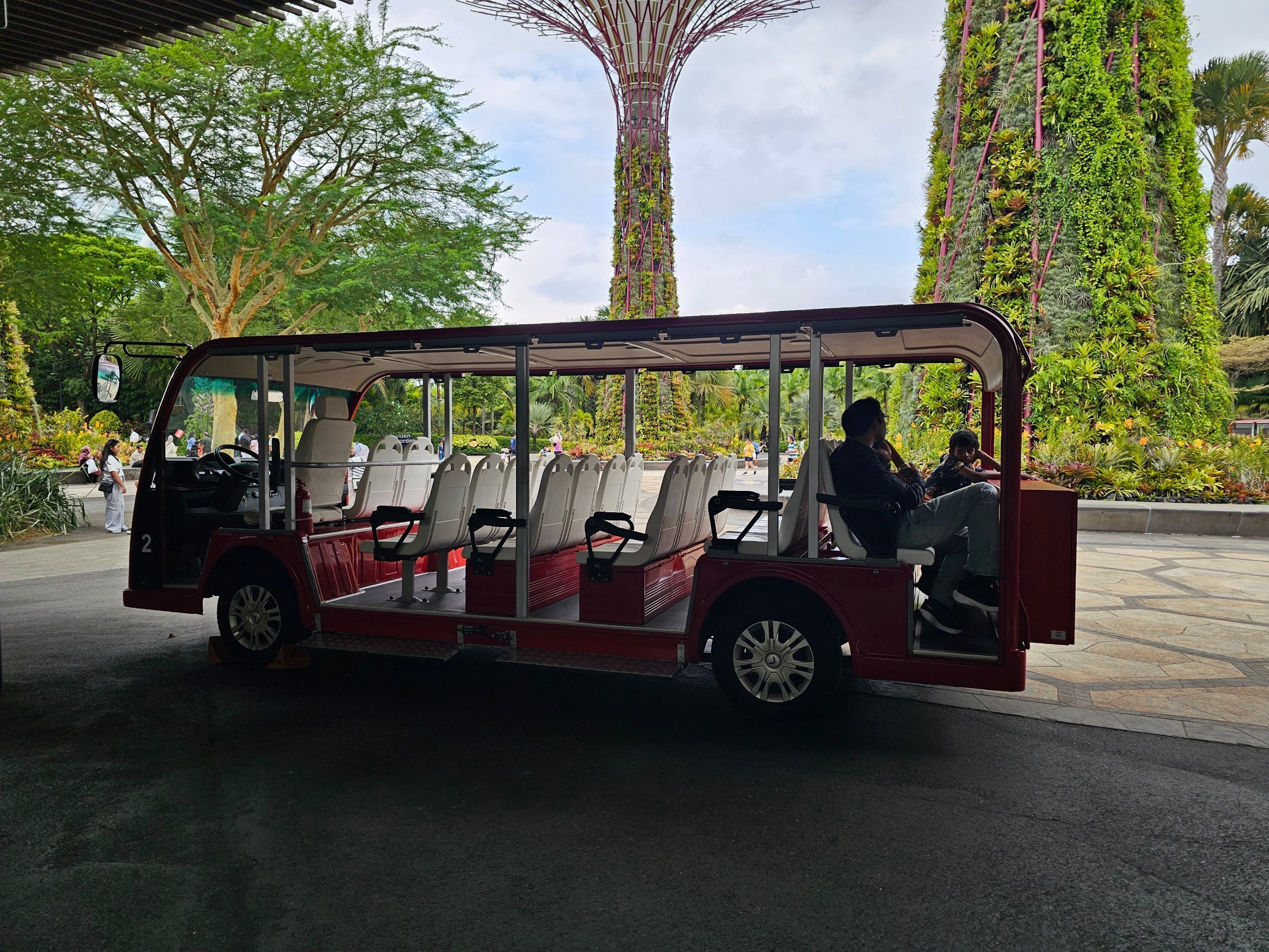 A partir da entrada principal, que fica a sul (no lado oposto ao hotel Marina Bay Sands), também pode pagar um passeio de carrinho elétrico por 10 sgd. Existem também cacifos na entrada para guardar a bagagem.