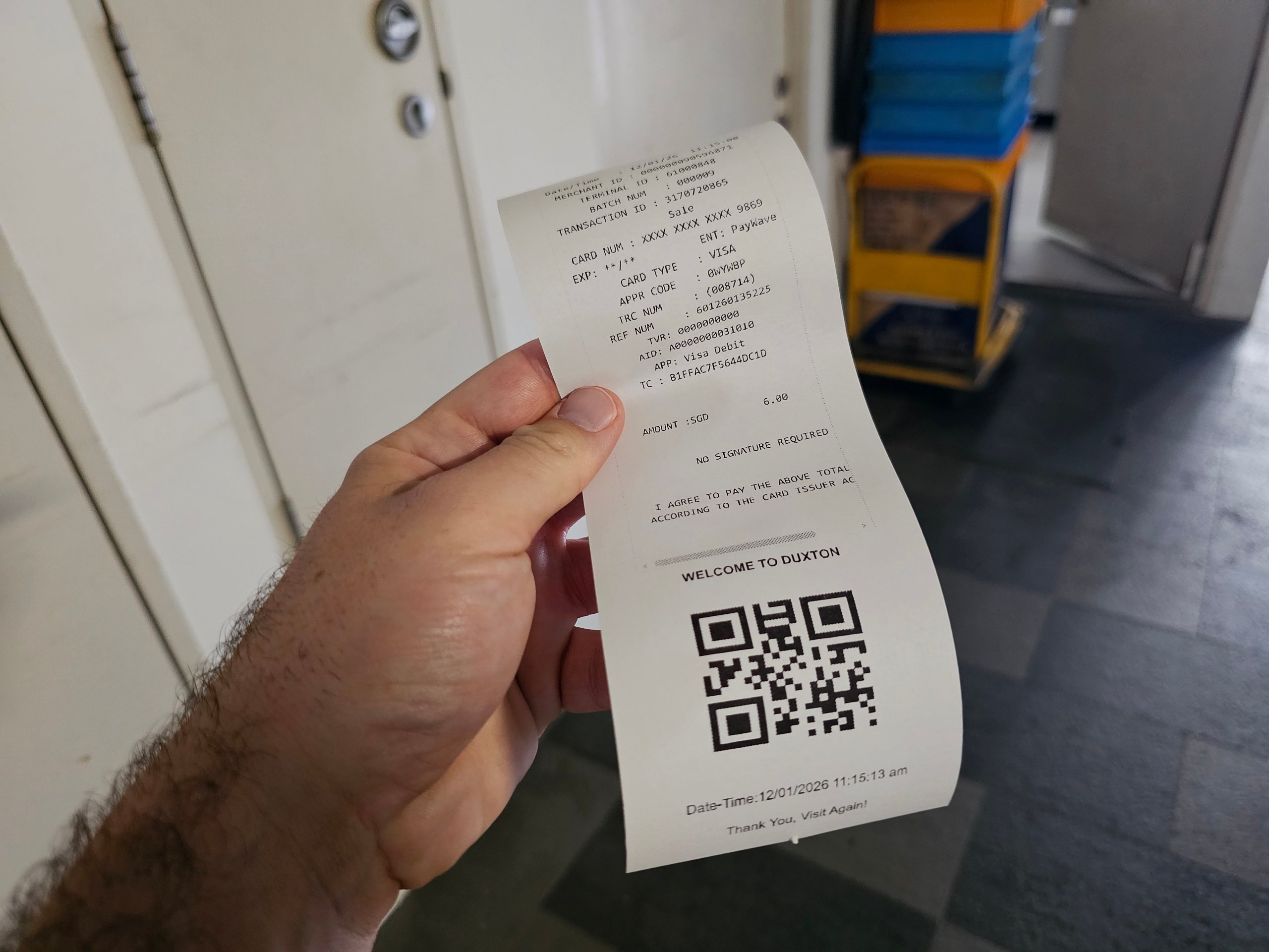 Entra no elevador, sobe até ao 50º andar e lê o código QR no torniquete.