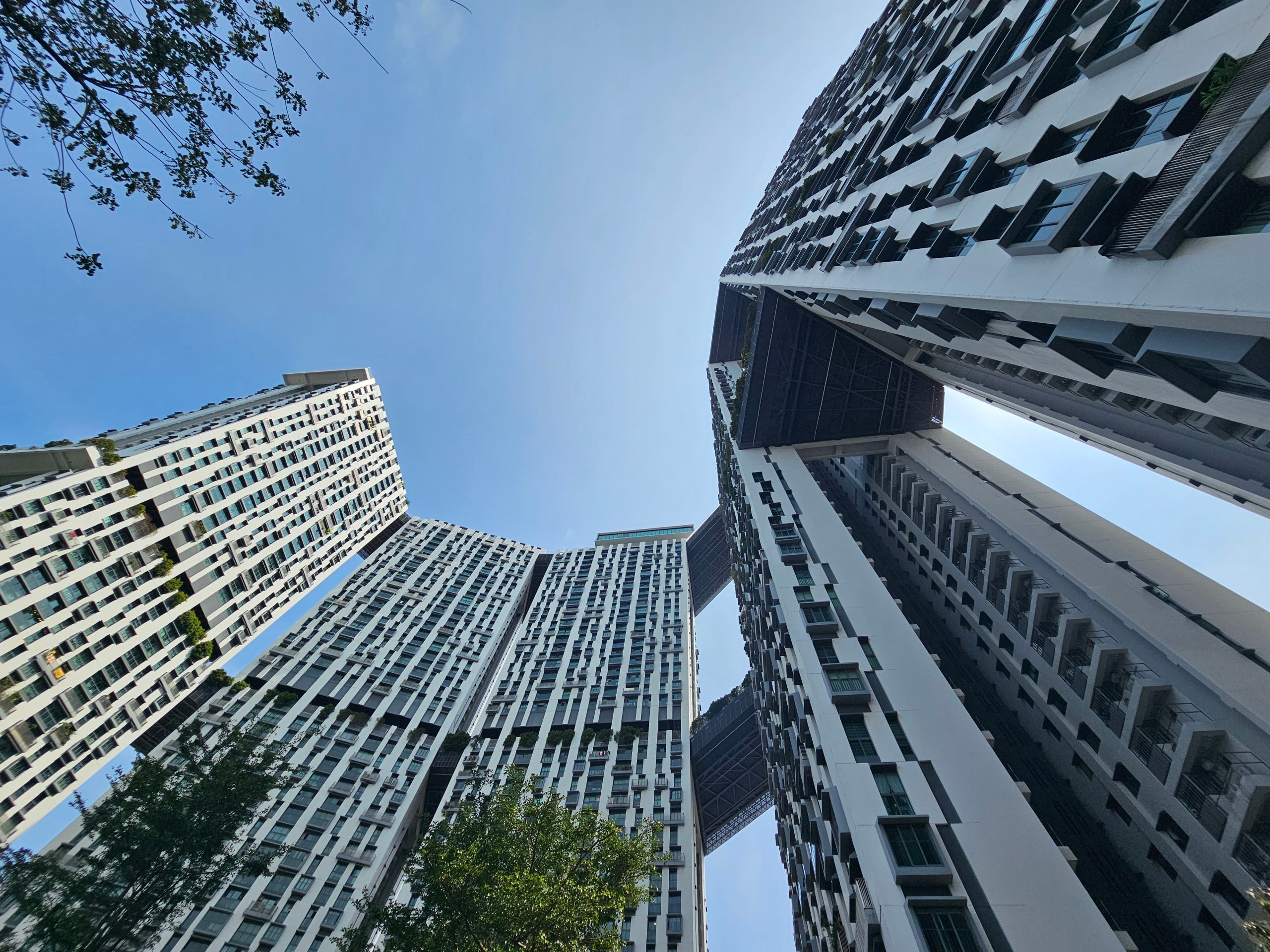 Pinnacle@Duxton é um moderno complexo de habitação pública (HDB) composto por várias torres interligadas.
