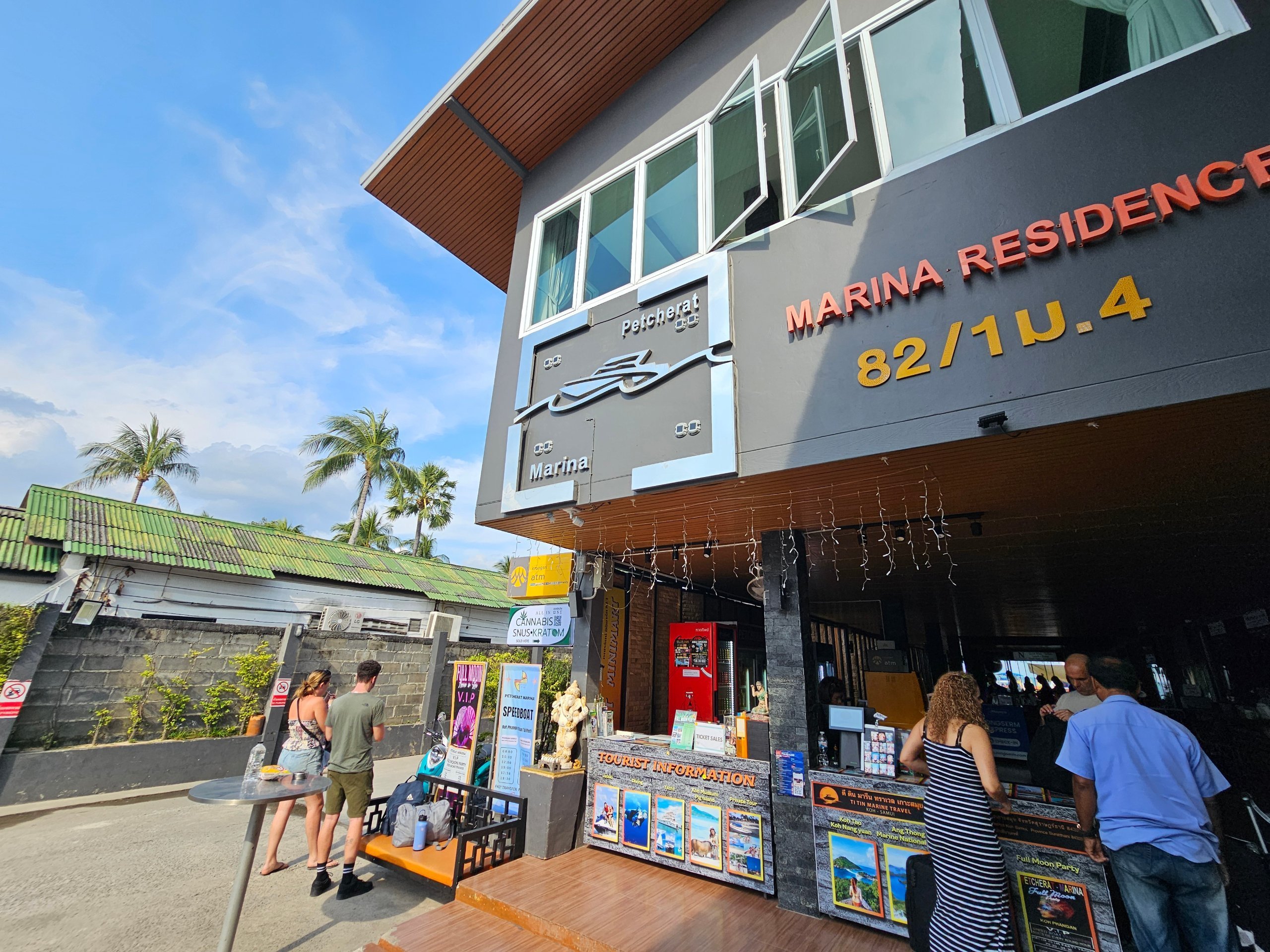 Também viajámos via Donsak a partir do aeroporto de Surat Thani (com a Lomprayah). O cais tem uma pequena zona de espera, casas de banho sujas e uma mini-loja com bebidas, fruta, doces ou sandes.